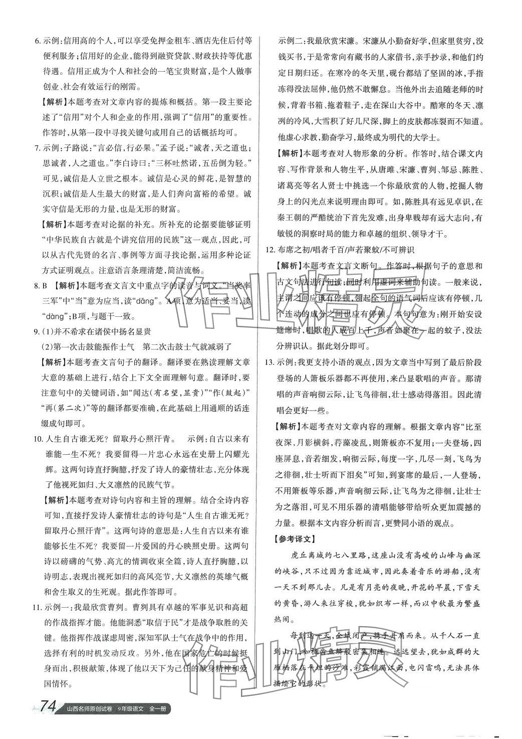 注:目前有些书本章节名称可能整理的还不是很完善,但都是按照顺序排列的,请同学们按照顺序仔细查找。练习册 2024年山西名师原创试卷九年级语文全一册人教版 答案主要是用来给同学们做完题方便对答案用的,请勿直接抄袭。