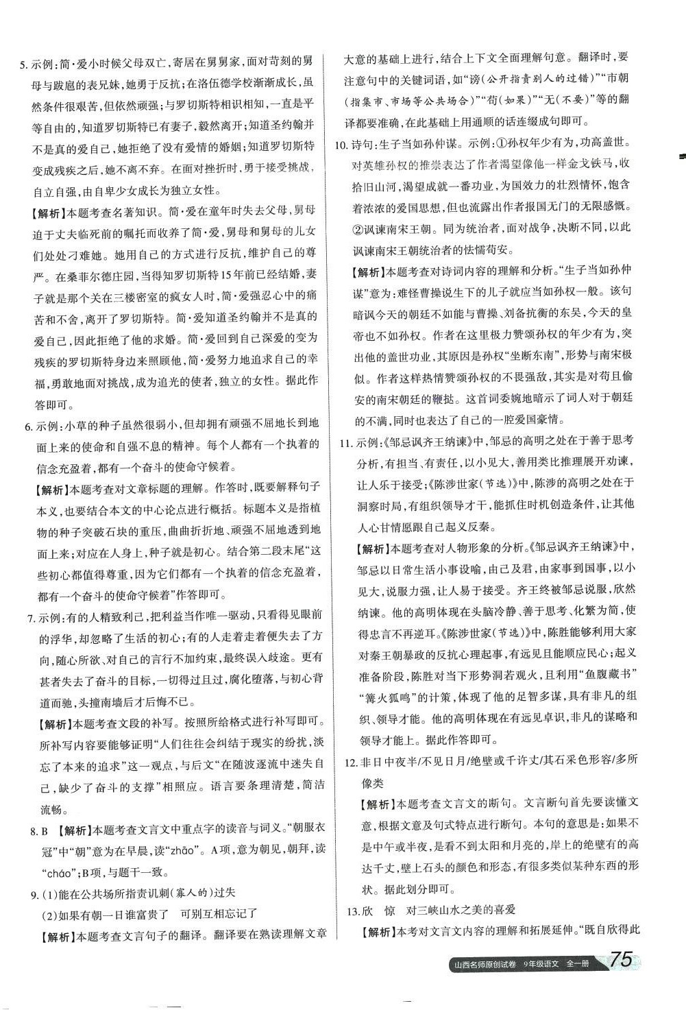 注:目前有些书本章节名称可能整理的还不是很完善,但都是按照顺序排列的,请同学们按照顺序仔细查找。练习册 2024年山西名师原创试卷九年级语文全一册人教版 答案主要是用来给同学们做完题方便对答案用的,请勿直接抄袭。