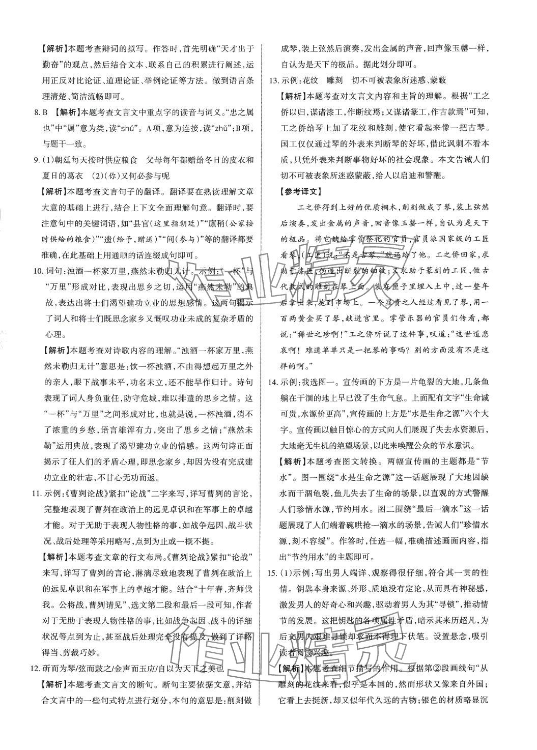 注:目前有些书本章节名称可能整理的还不是很完善,但都是按照顺序排列的,请同学们按照顺序仔细查找。练习册 2024年山西名师原创试卷九年级语文全一册人教版 答案主要是用来给同学们做完题方便对答案用的,请勿直接抄袭。
