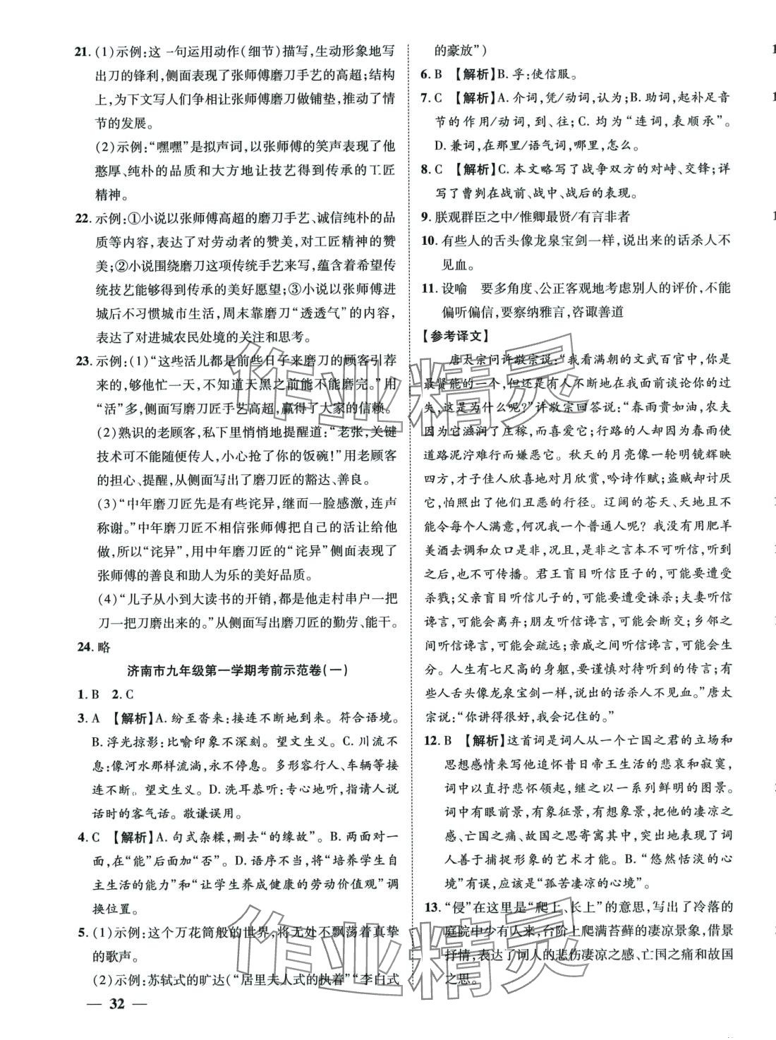 注:目前有些书本章节名称可能整理的还不是很完善,但都是按照顺序排列的,请同学们按照顺序仔细查找。练习册 2024年考前示范卷九年级语文全一册人教版济南专版 答案主要是用来给同学们做完题方便对答案用的,请勿直接抄袭。