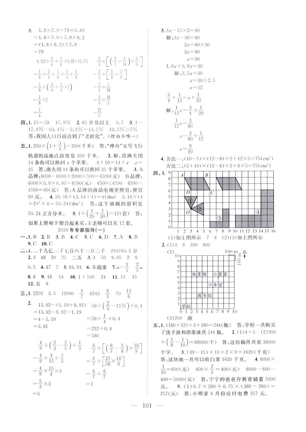 注:目前有些书本章节名称可能整理的还不是很完善,但都是按照顺序排列的,请同学们按照顺序仔细查找。练习册 2024年小考专家必刷卷六年级数学 答案主要是用来给同学们做完题方便对答案用的,请勿直接抄袭。