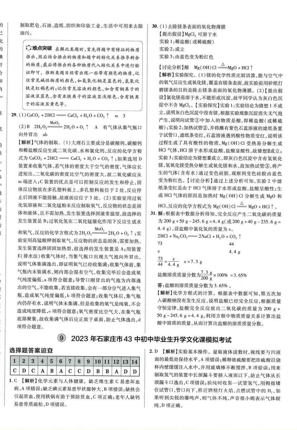 注:目前有些书本章节名称可能整理的还不是很完善,但都是按照顺序排列的,请同学们按照顺序仔细查找。练习册 2024年北大绿卡名校中考模拟试卷汇编化学中考 答案主要是用来给同学们做完题方便对答案用的,请勿直接抄袭。