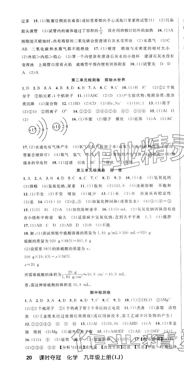 注:目前有些书本章节名称可能整理的还不是很完善,但都是按照顺序排列的,请同学们按照顺序仔细查找。练习册 2024年课时夺冠九年级化学上册鲁教版 答案主要是用来给同学们做完题方便对答案用的,请勿直接抄袭。