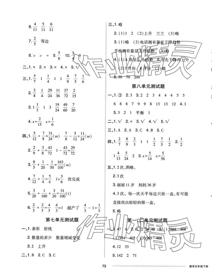 注:目前有些书本章节名称可能整理的还不是很完善,但都是按照顺序排列的,请同学们按照顺序仔细查找。练习册 2024年同步练习册配套单元自测卷五年级数学下册人教版 答案主要是用来给同学们做完题方便对答案用的,请勿直接抄袭。