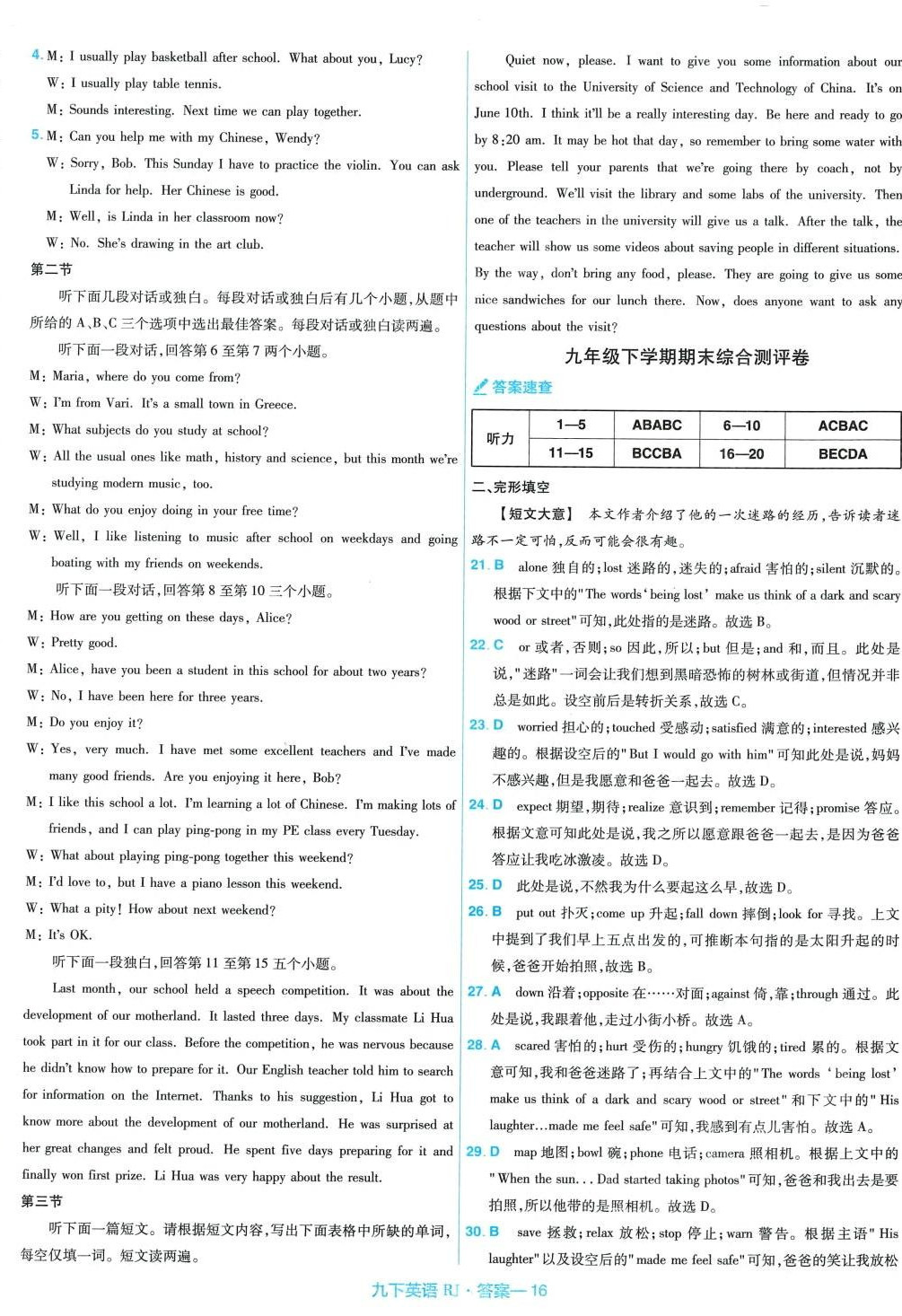 注:目前有些书本章节名称可能整理的还不是很完善,但都是按照顺序排列的,请同学们按照顺序仔细查找。练习册 2024年金考卷活页题选九年级英语下册人教版 答案主要是用来给同学们做完题方便对答案用的,请勿直接抄袭。