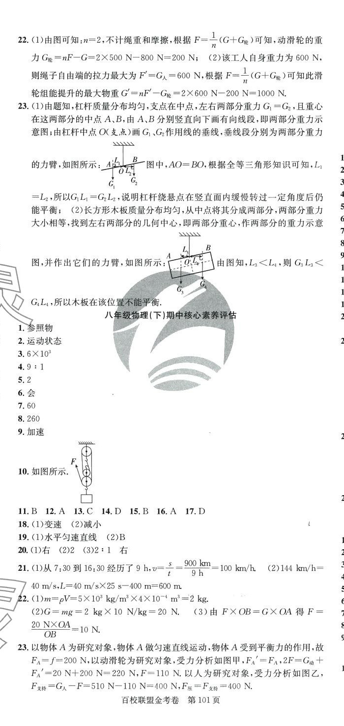 注:目前有些书本章节名称可能整理的还不是很完善,但都是按照顺序排列的,请同学们按照顺序仔细查找。练习册 2024年百校联盟金考卷八年级物理下册人教版 答案主要是用来给同学们做完题方便对答案用的,请勿直接抄袭。