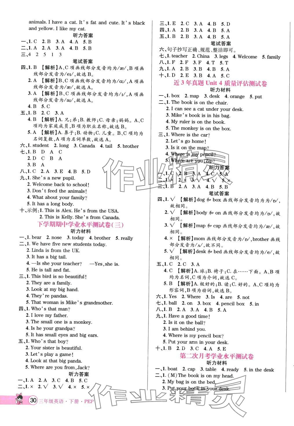 注:目前有些书本章节名称可能整理的还不是很完善,但都是按照顺序排列的,请同学们按照顺序仔细查找。练习册 2024年河南3年玉汝于成三年级英语下册人教PEP版 答案主要是用来给同学们做完题方便对答案用的,请勿直接抄袭。