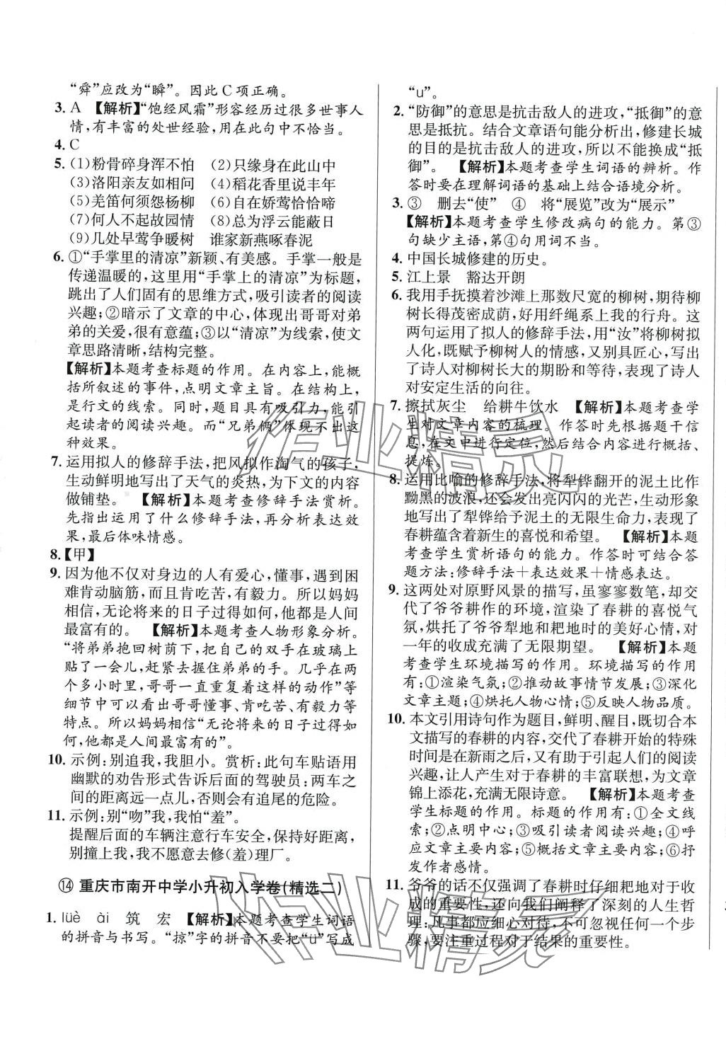 2024年小升初招生分班必刷卷六年级语文人教版重庆专版