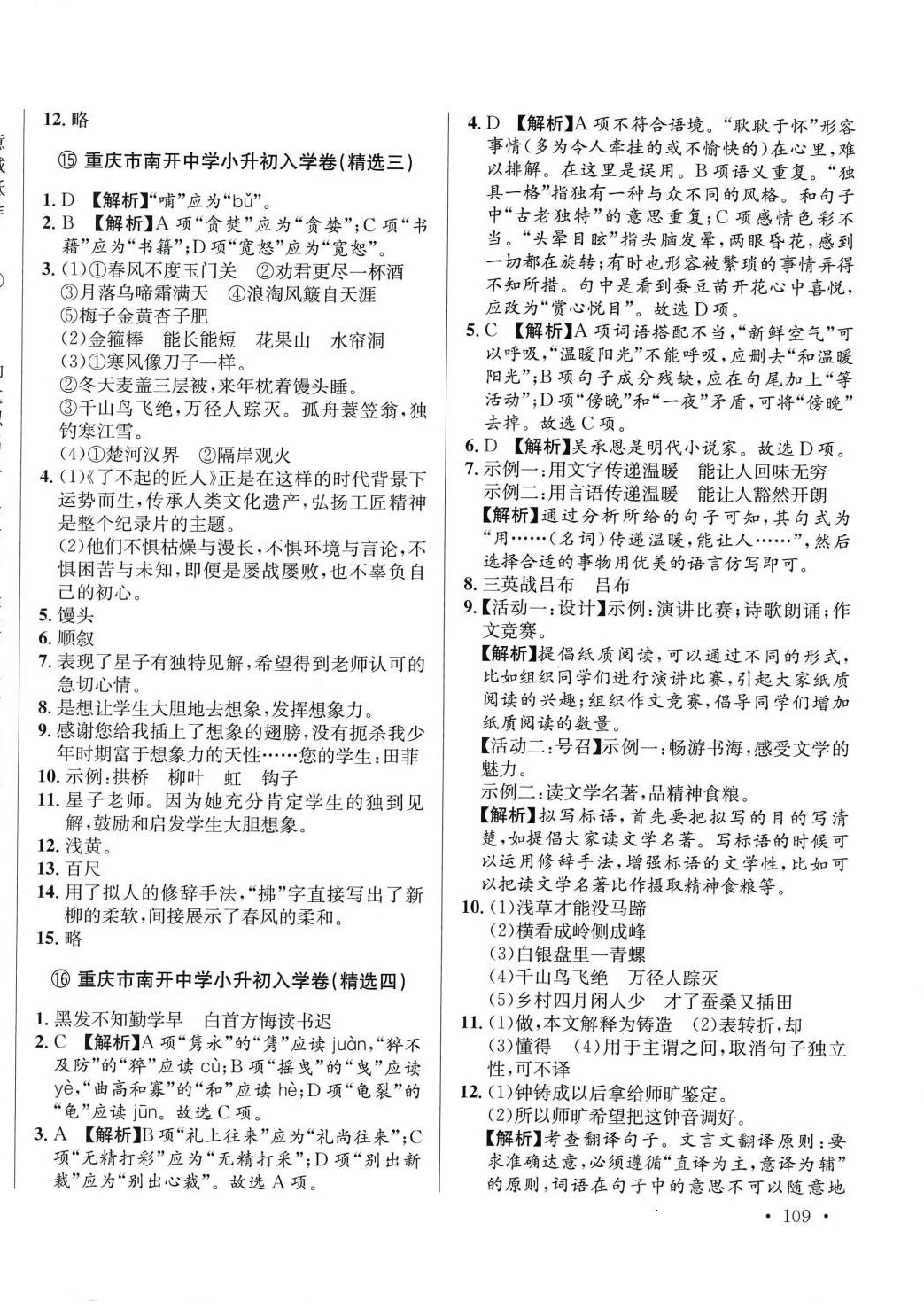 注:目前有些书本章节名称可能整理的还不是很完善,但都是按照顺序排列的,请同学们按照顺序仔细查找。练习册 2024年小升初招生分班必刷卷六年级语文人教版重庆专版 答案主要是用来给同学们做完题方便对答案用的,请勿直接抄袭。