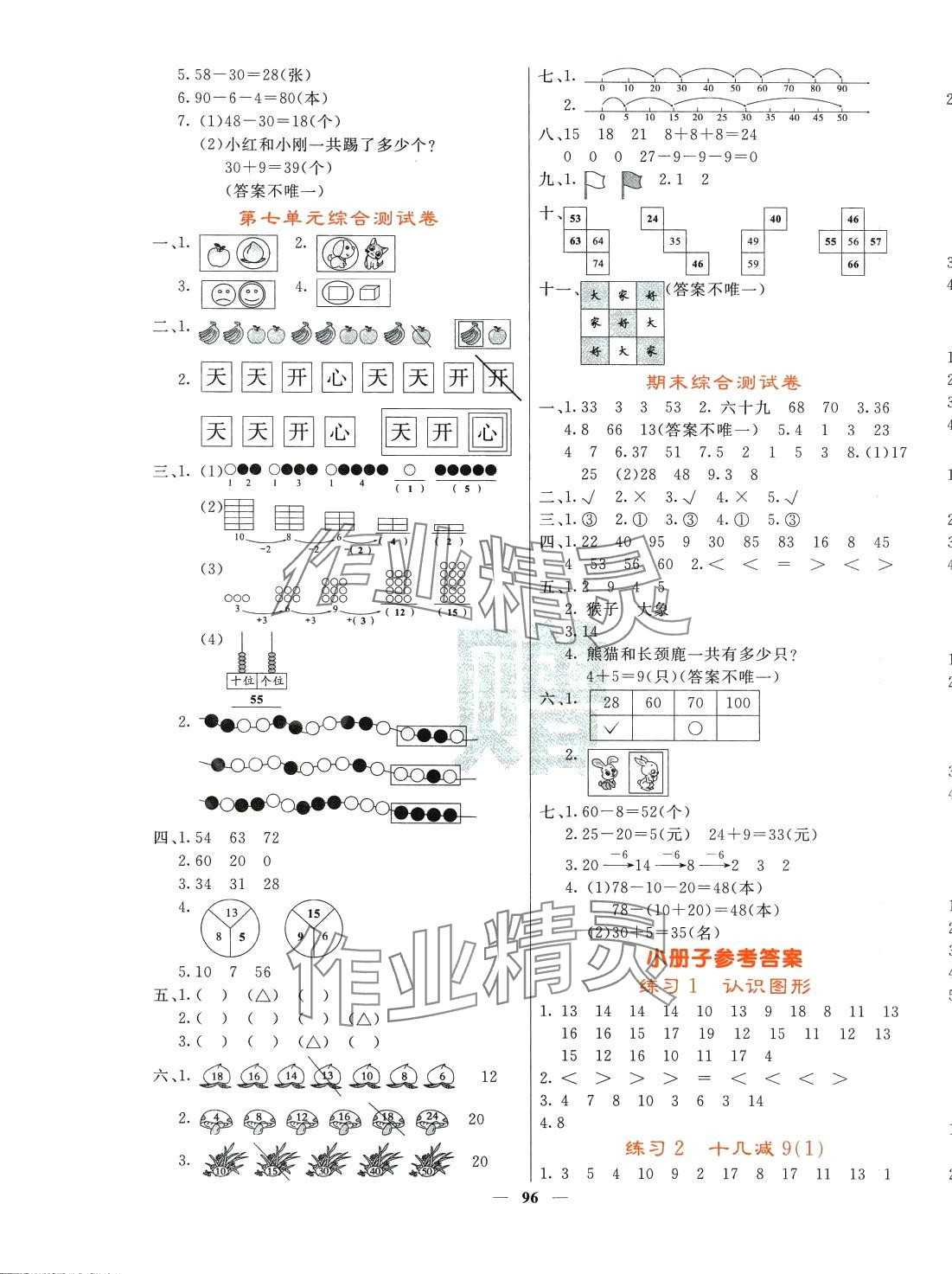 注:目前有些书本章节名称可能整理的还不是很完善,但都是按照顺序排列的,请同学们按照顺序仔细查找。练习册 2024年课堂点睛一年级数学下册人教版湖北专版 答案主要是用来给同学们做完题方便对答案用的,请勿直接抄袭。