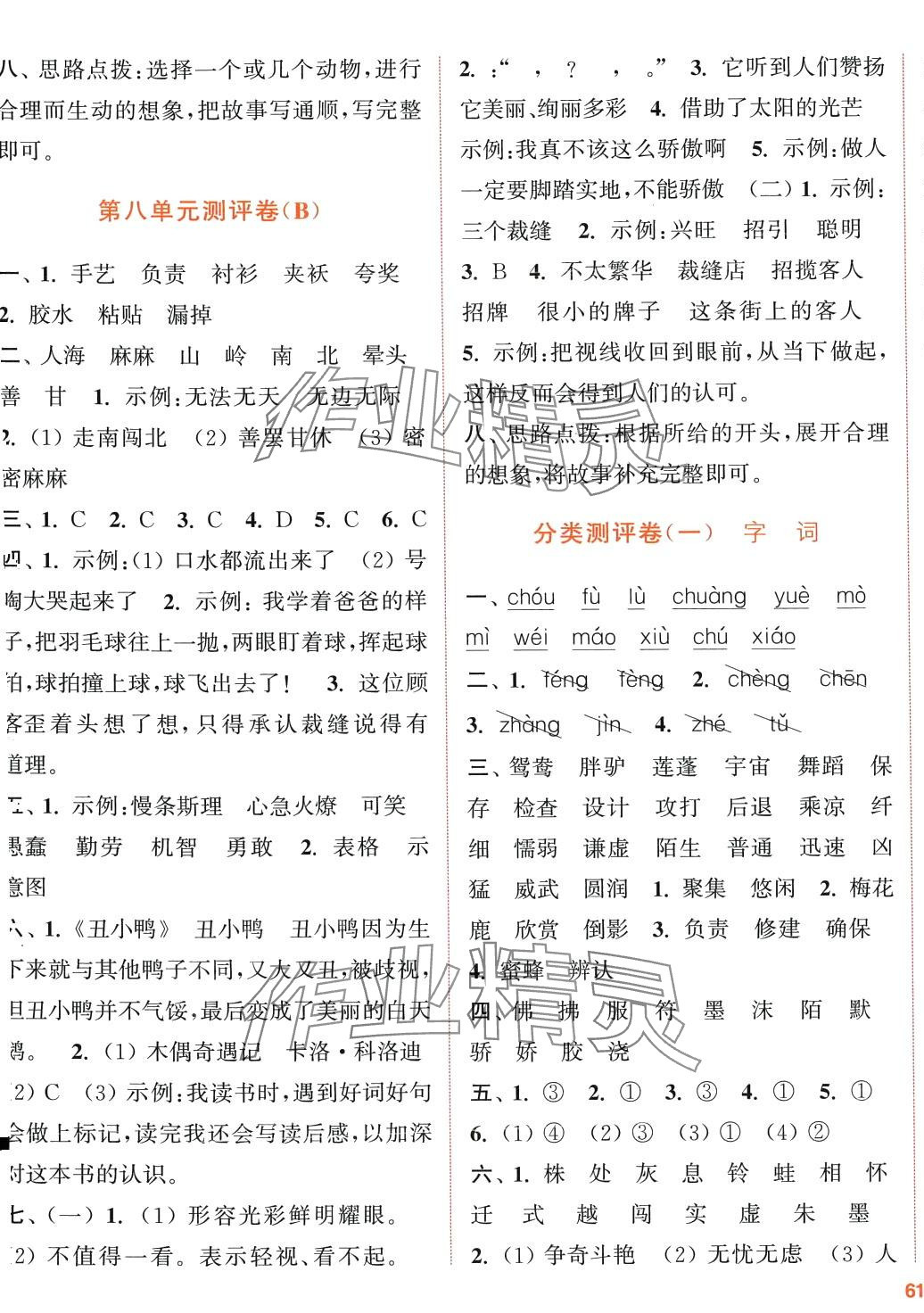 注:目前有些书本章节名称可能整理的还不是很完善,但都是按照顺序排列的,请同学们按照顺序仔细查找。练习册 2024年通城学典全程测评卷三年级语文下册人教版 答案主要是用来给同学们做完题方便对答案用的,请勿直接抄袭。
