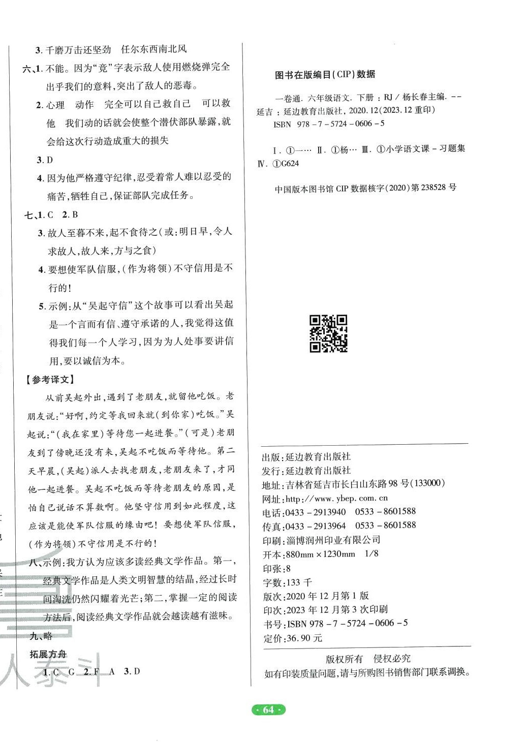 注:目前有些书本章节名称可能整理的还不是很完善,但都是按照顺序排列的,请同学们按照顺序仔细查找。练习册 2024年一卷通小学核心素养评价六年级语文下册人教版 答案主要是用来给同学们做完题方便对答案用的,请勿直接抄袭。