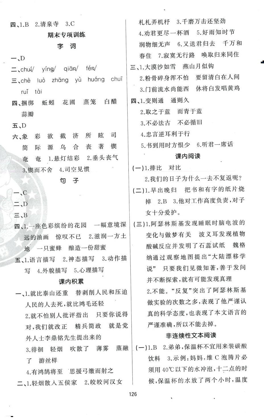 注:目前有些书本章节名称可能整理的还不是很完善,但都是按照顺序排列的,请同学们按照顺序仔细查找。练习册 2024年黄冈100分闯关六年级语文下册人教版 答案主要是用来给同学们做完题方便对答案用的,请勿直接抄袭。