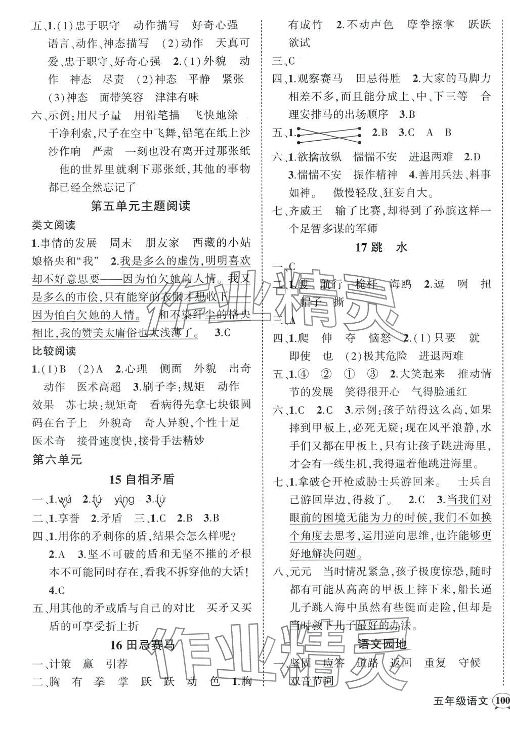 注:目前有些书本章节名称可能整理的还不是很完善,但都是按照顺序排列的,请同学们按照顺序仔细查找。练习册 2024年状元成才路创优作业100分五年级语文下册人教版四川专版 答案主要是用来给同学们做完题方便对答案用的,请勿直接抄袭。