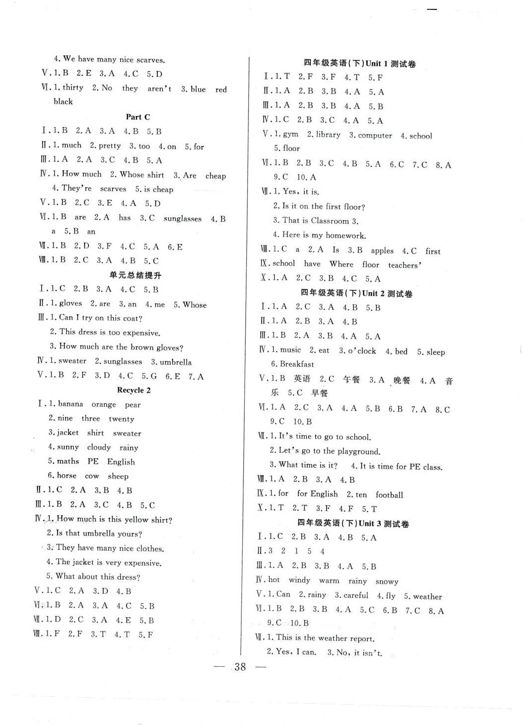 注:目前有些书本章节名称可能整理的还不是很完善,但都是按照顺序排列的,请同学们按照顺序仔细查找。练习册 2024年优等生全优计划四年级英语下册人教版 答案主要是用来给同学们做完题方便对答案用的,请勿直接抄袭。