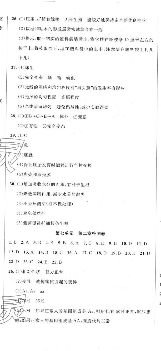 注:目前有些书本章节名称可能整理的还不是很完善,但都是按照顺序排列的,请同学们按照顺序仔细查找。练习册 2024年课时夺冠八年级生物下册人教版 答案主要是用来给同学们做完题方便对答案用的,请勿直接抄袭。