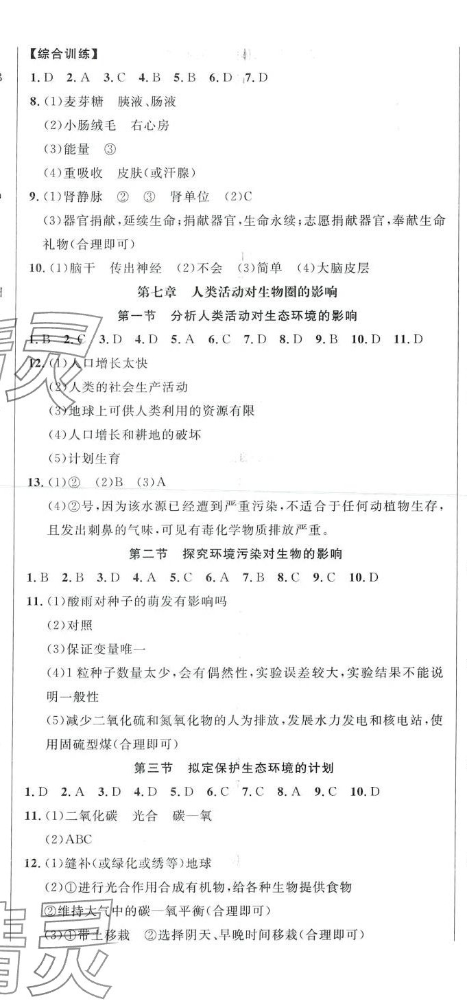 注:目前有些书本章节名称可能整理的还不是很完善,但都是按照顺序排列的,请同学们按照顺序仔细查找。练习册 2024年课时夺冠七年级生物下册人教版 答案主要是用来给同学们做完题方便对答案用的,请勿直接抄袭。
