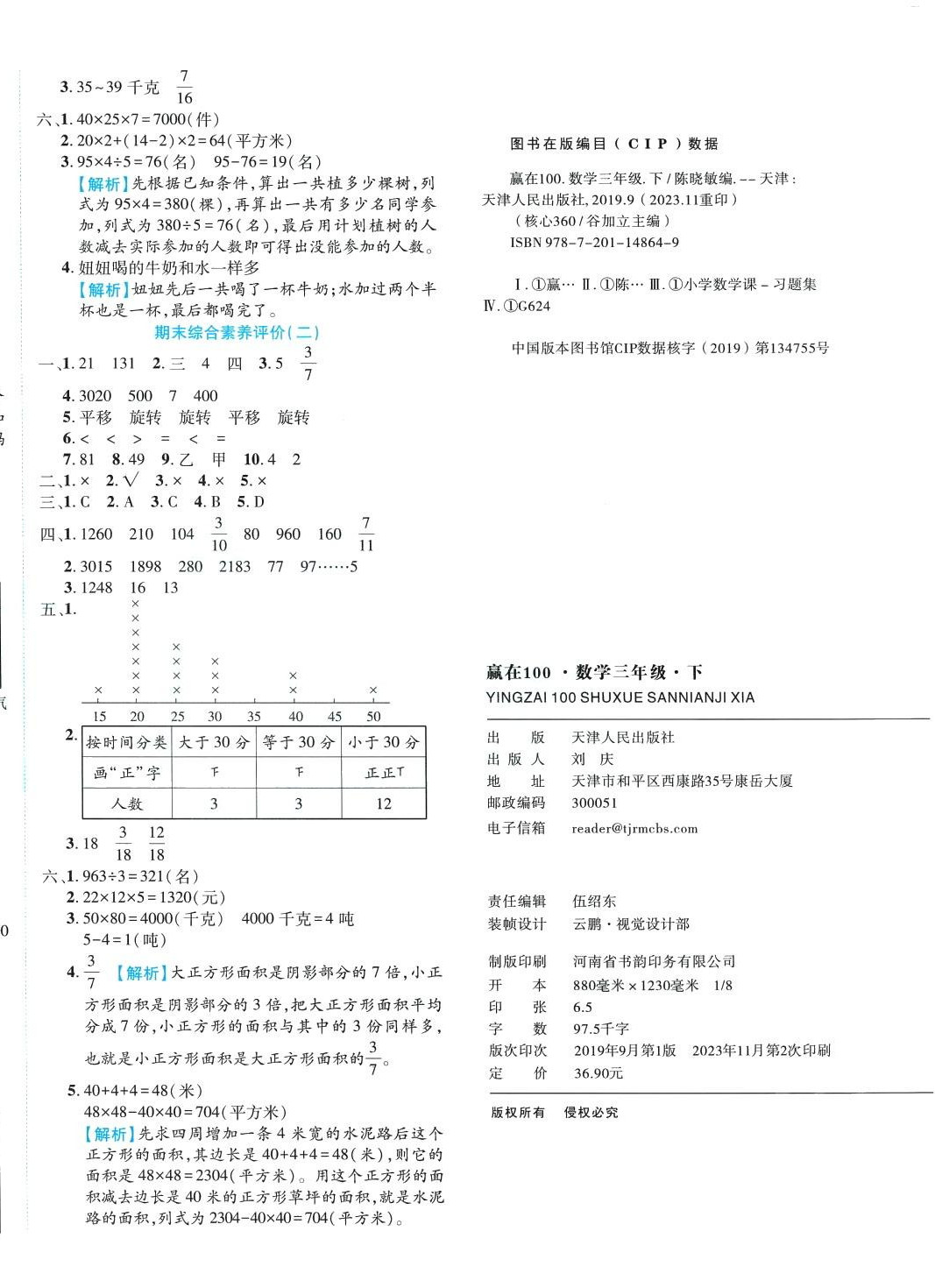 注:目前有些书本章节名称可能整理的还不是很完善,但都是按照顺序排列的,请同学们按照顺序仔细查找。练习册 2024年赢在100三年级数学下册北师大版 答案主要是用来给同学们做完题方便对答案用的,请勿直接抄袭。