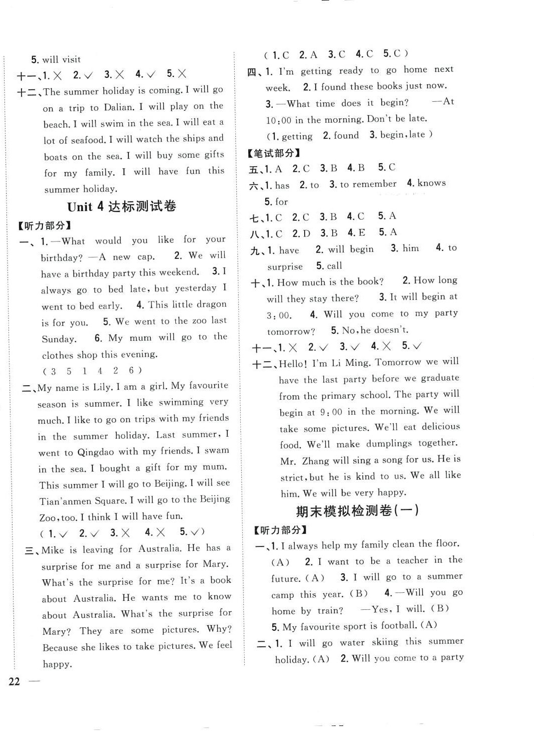 注:目前有些书本章节名称可能整理的还不是很完善,但都是按照顺序排列的,请同学们按照顺序仔细查找。练习册 2024年全科王同步课时练习六年级英语下册冀教版 答案主要是用来给同学们做完题方便对答案用的,请勿直接抄袭。