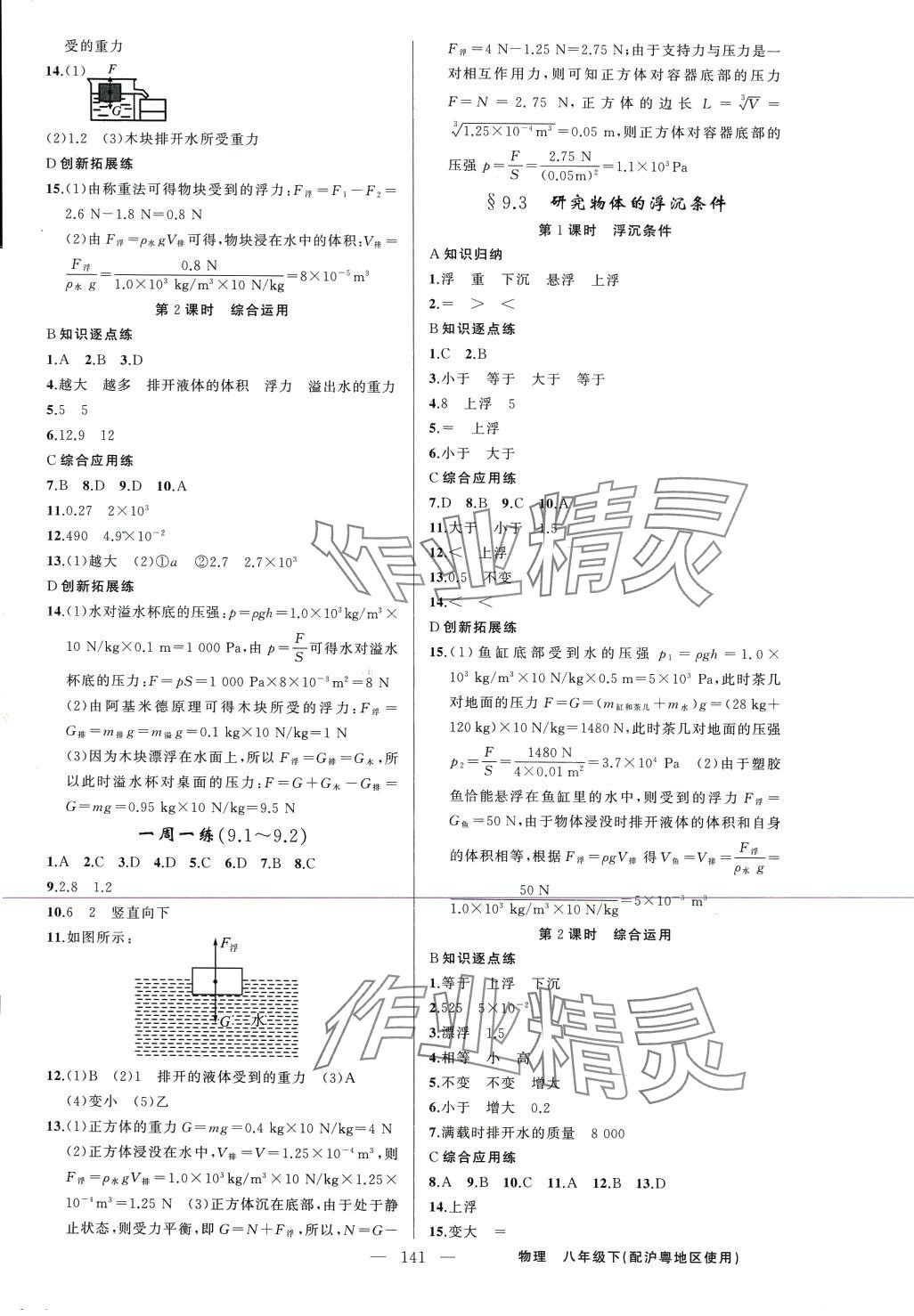 2024年黄冈金牌之路练闯考八年级物理下册沪粤版