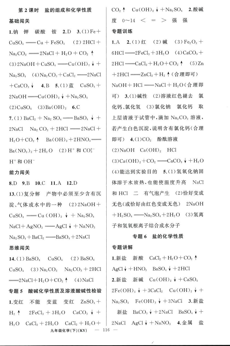 注:目前有些书本章节名称可能整理的还不是很完善,但都是按照顺序排列的,请同学们按照顺序仔细查找。练习册 2024年黄冈100分闯关九年级化学下册科粤版 答案主要是用来给同学们做完题方便对答案用的,请勿直接抄袭。