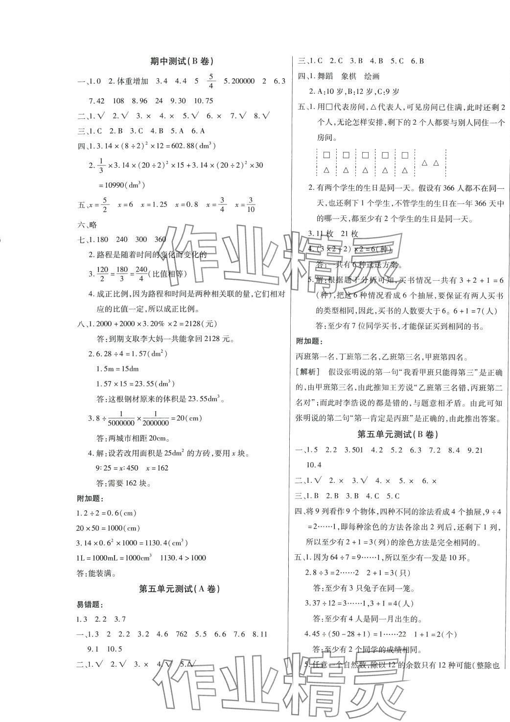 注:目前有些书本章节名称可能整理的还不是很完善,但都是按照顺序排列的,请同学们按照顺序仔细查找。练习册 2024年探究学案单元测试卷六年级数学下册人教版 答案主要是用来给同学们做完题方便对答案用的,请勿直接抄袭。