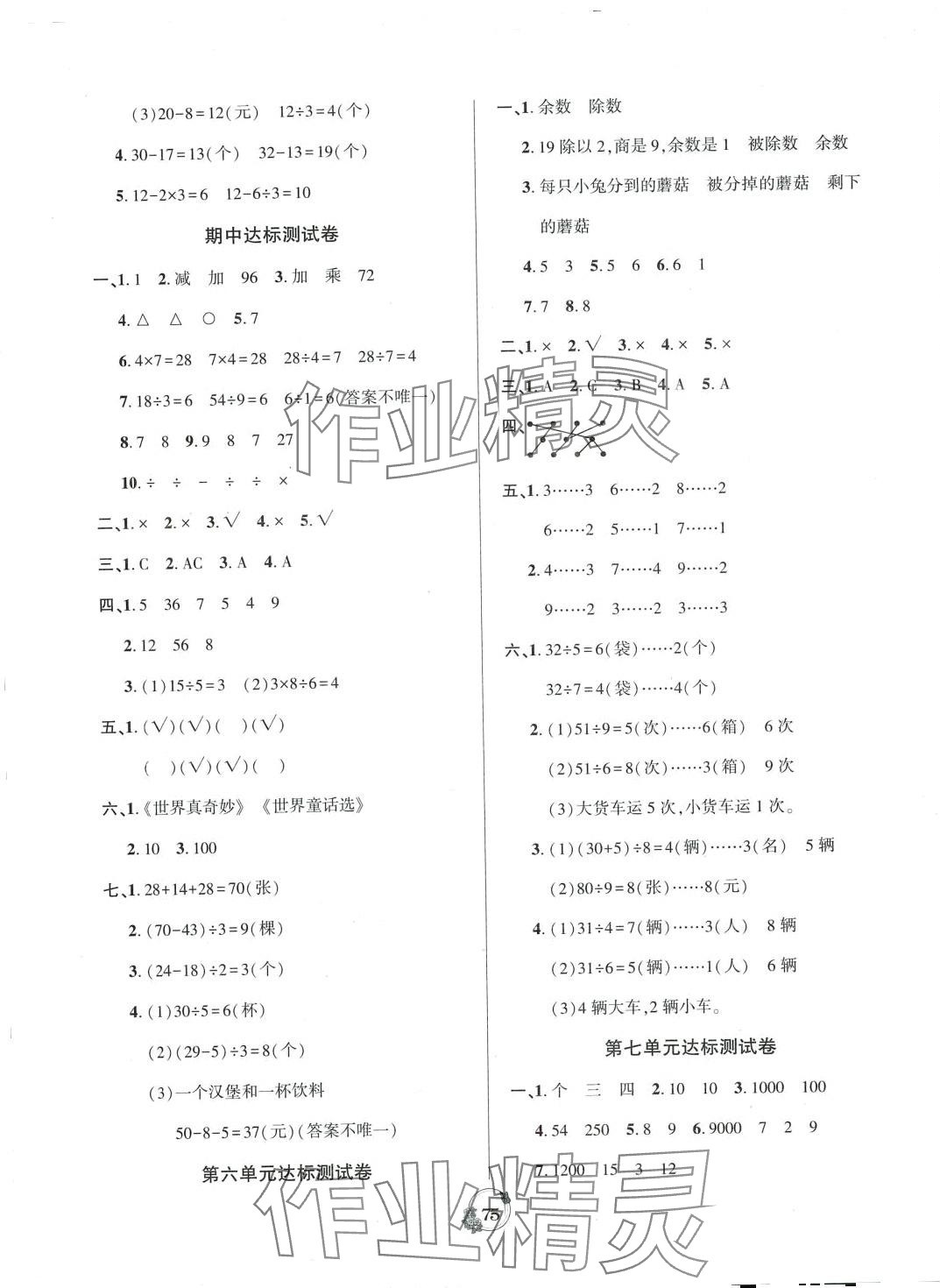 注:目前有些书本章节名称可能整理的还不是很完善,但都是按照顺序排列的,请同学们按照顺序仔细查找。练习册 2024年名校点金卷黑龙江美术出版社二年级数学下册人教版 答案主要是用来给同学们做完题方便对答案用的,请勿直接抄袭。