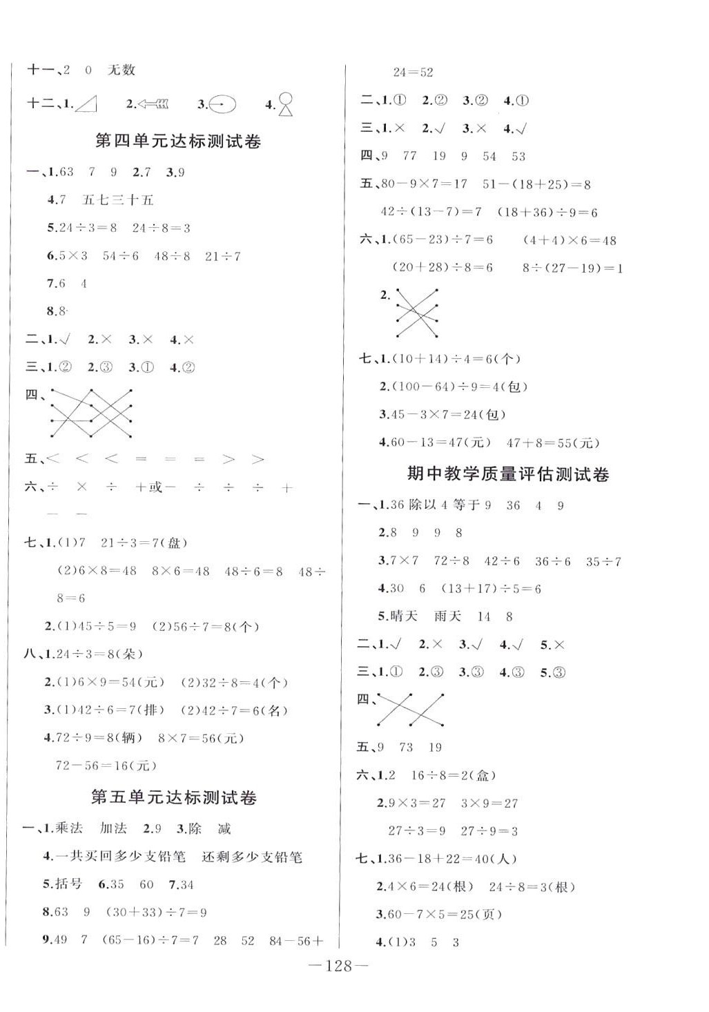 注:目前有些书本章节名称可能整理的还不是很完善,但都是按照顺序排列的,请同学们按照顺序仔细查找。练习册 2024年A加优化作业本二年级数学下册人教版 答案主要是用来给同学们做完题方便对答案用的,请勿直接抄袭。