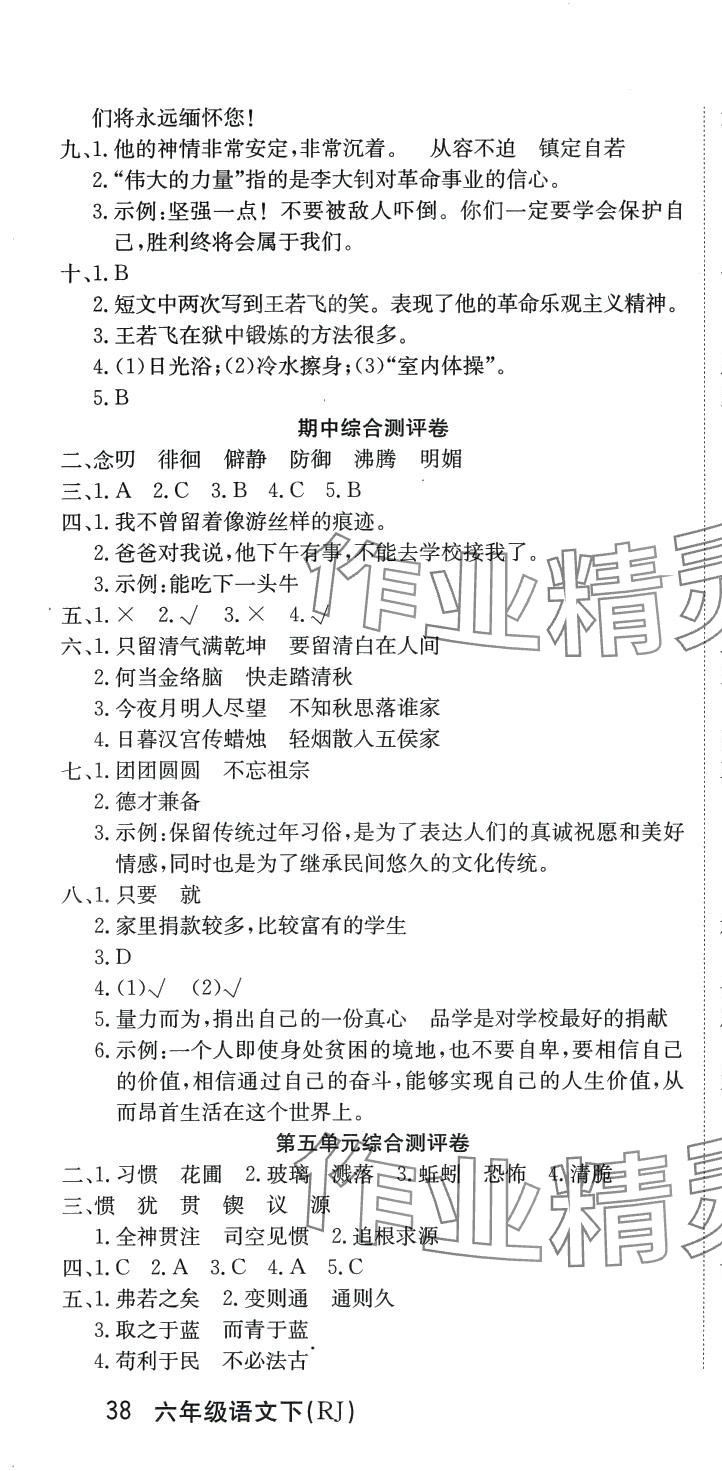 注:目前有些书本章节名称可能整理的还不是很完善,但都是按照顺序排列的,请同学们按照顺序仔细查找。练习册 2024年单元测评卷优优好卷六年级语文下册人教版 答案主要是用来给同学们做完题方便对答案用的,请勿直接抄袭。