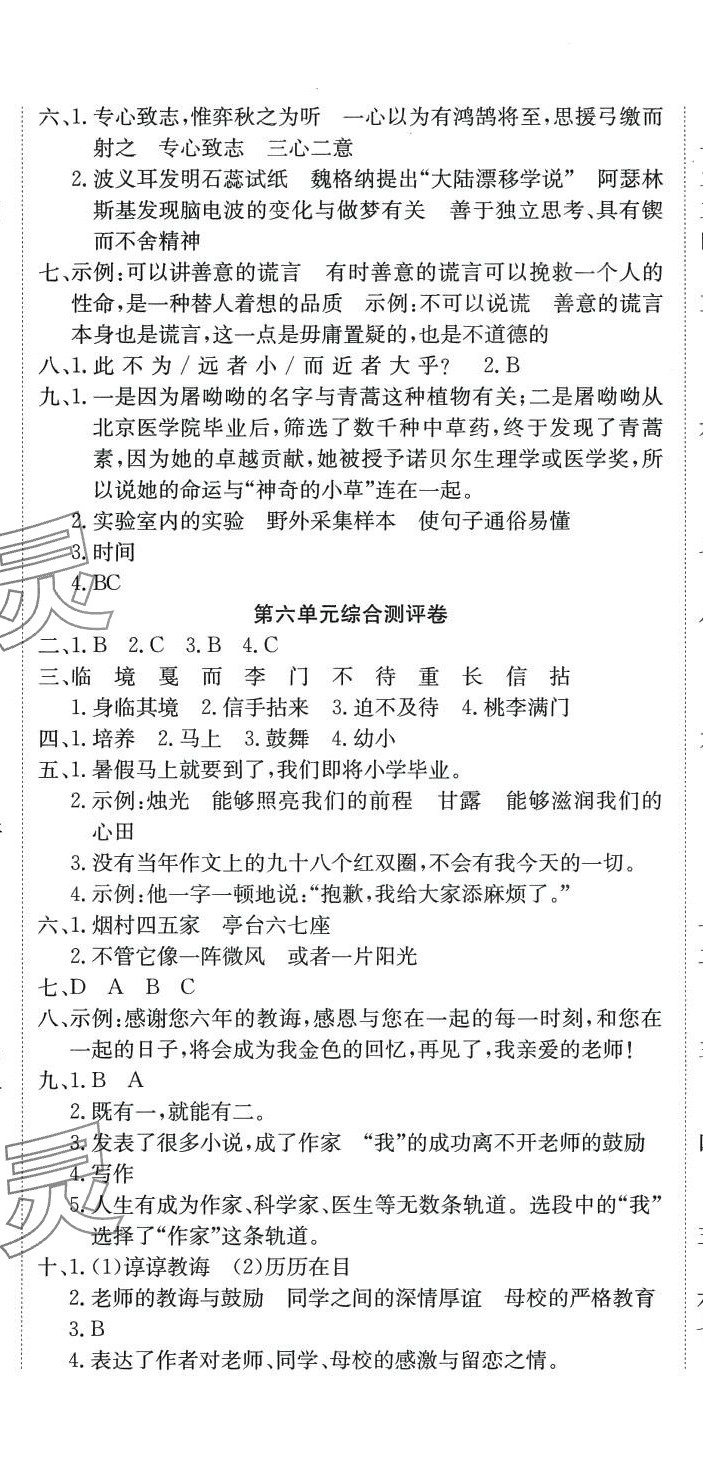 注:目前有些书本章节名称可能整理的还不是很完善,但都是按照顺序排列的,请同学们按照顺序仔细查找。练习册 2024年单元测评卷优优好卷六年级语文下册人教版 答案主要是用来给同学们做完题方便对答案用的,请勿直接抄袭。