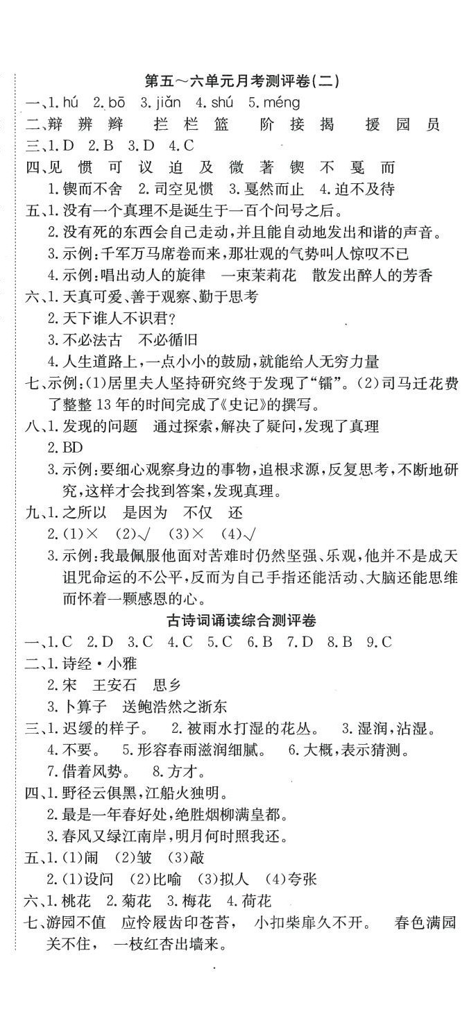 注:目前有些书本章节名称可能整理的还不是很完善,但都是按照顺序排列的,请同学们按照顺序仔细查找。练习册 2024年单元测评卷优优好卷六年级语文下册人教版 答案主要是用来给同学们做完题方便对答案用的,请勿直接抄袭。