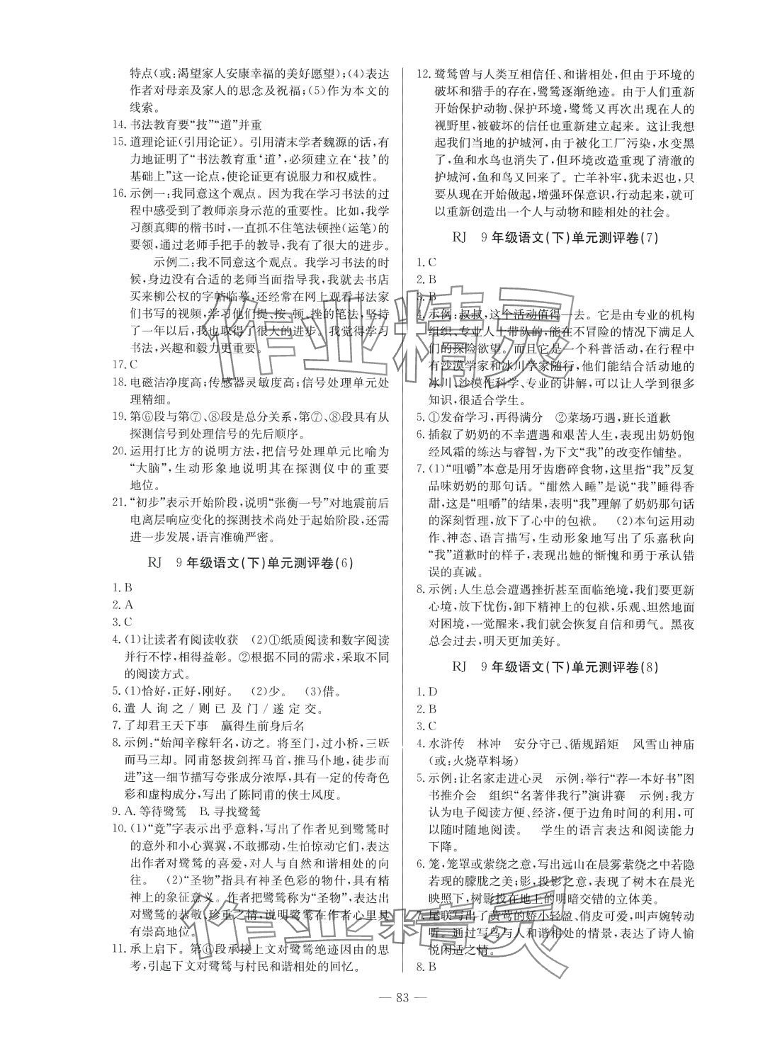 注:目前有些书本章节名称可能整理的还不是很完善,但都是按照顺序排列的,请同学们按照顺序仔细查找。练习册 2024年精彩考评单元测评卷九年级语文下册人教版 答案主要是用来给同学们做完题方便对答案用的,请勿直接抄袭。