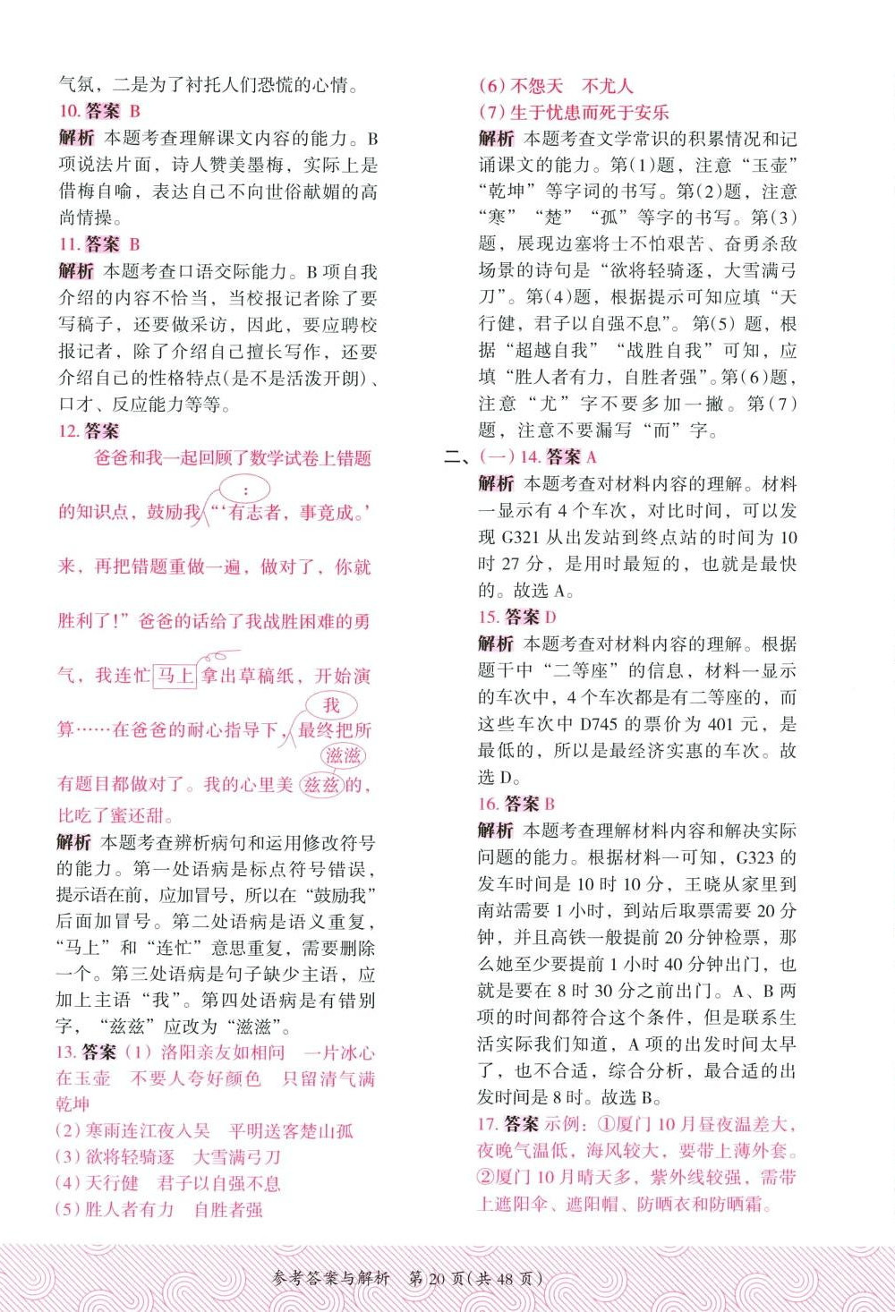 注:目前有些书本章节名称可能整理的还不是很完善,但都是按照顺序排列的,请同学们按照顺序仔细查找。练习册 2024年木头马优卷四年级语文下册人教版福建专版 答案主要是用来给同学们做完题方便对答案用的,请勿直接抄袭。
