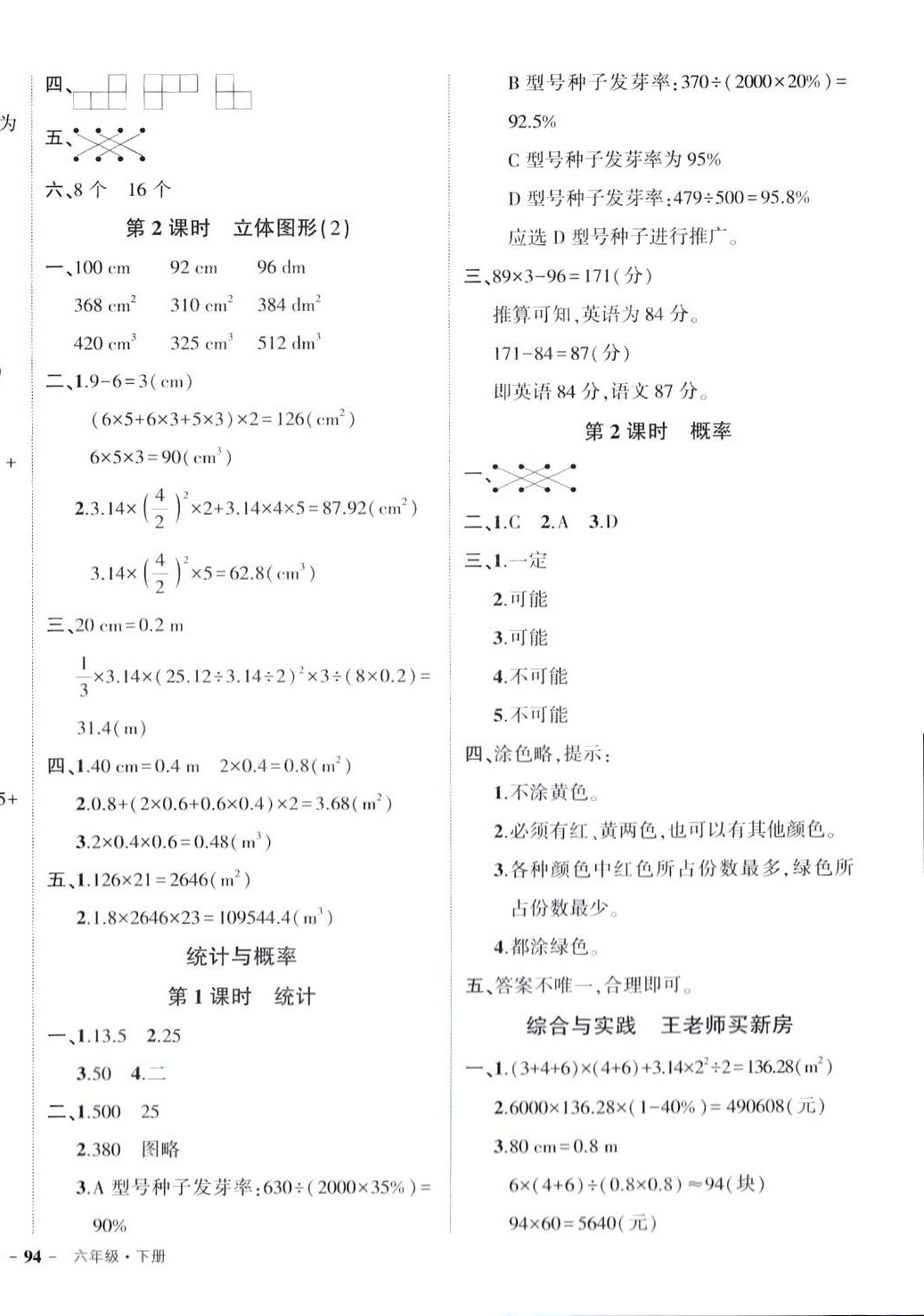 注:目前有些书本章节名称可能整理的还不是很完善,但都是按照顺序排列的,请同学们按照顺序仔细查找。练习册 2024年状元成才路创优作业100分六年级数学下册西师大版 答案主要是用来给同学们做完题方便对答案用的,请勿直接抄袭。