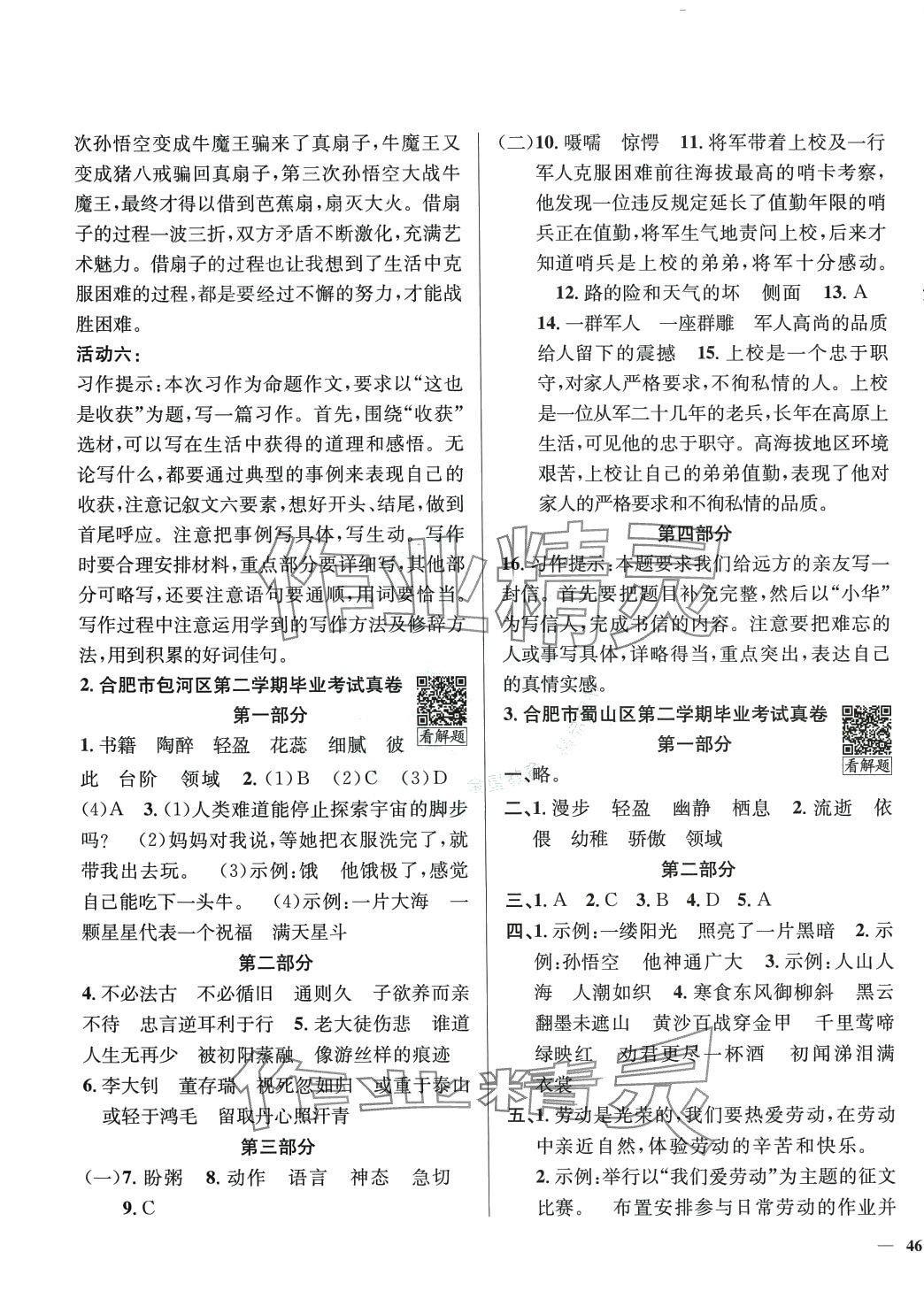 注:目前有些书本章节名称可能整理的还不是很完善,但都是按照顺序排列的,请同学们按照顺序仔细查找。练习册 2024年真题圈六年级语文下册人教版安徽专版 答案主要是用来给同学们做完题方便对答案用的,请勿直接抄袭。
