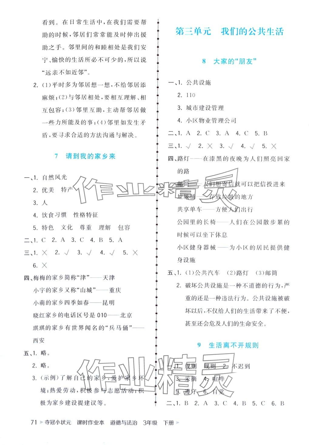 注:目前有些书本章节名称可能整理的还不是很完善,但都是按照顺序排列的,请同学们按照顺序仔细查找。练习册 2024年夺冠小状元课时作业本三年级道德与法治下册人教版 答案主要是用来给同学们做完题方便对答案用的,请勿直接抄袭。