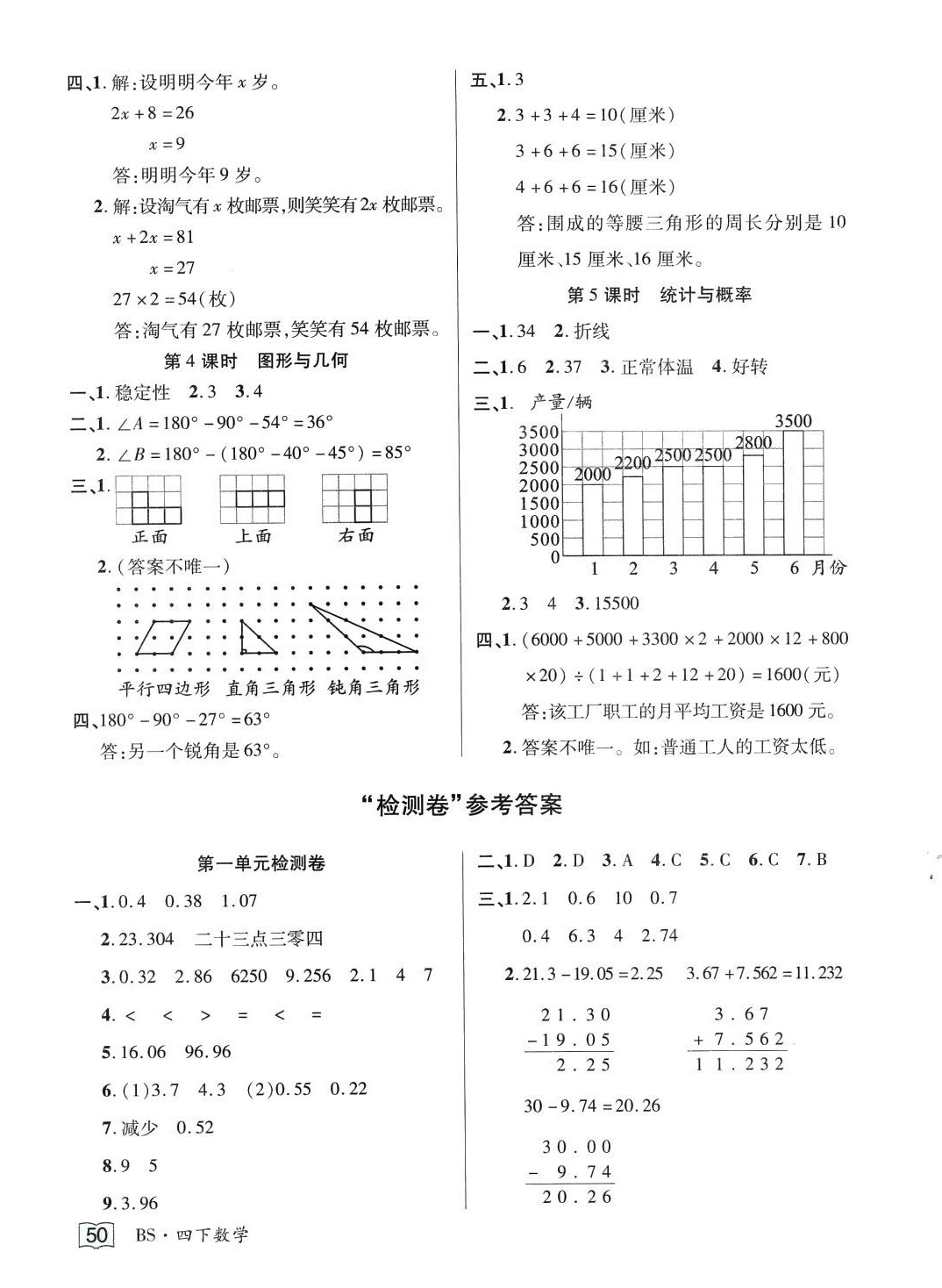 注:目前有些书本章节名称可能整理的还不是很完善,但都是按照顺序排列的,请同学们按照顺序仔细查找。练习册 2024年花儿与星星四年级数学下册北师大版 答案主要是用来给同学们做完题方便对答案用的,请勿直接抄袭。