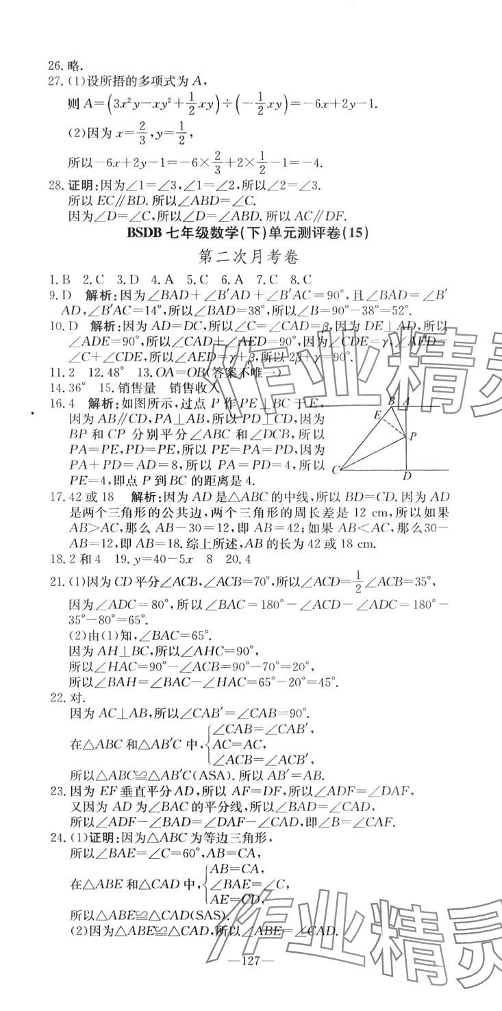 注:目前有些书本章节名称可能整理的还不是很完善,但都是按照顺序排列的,请同学们按照顺序仔细查找。练习册 2024年精彩考评单元测评卷七年级数学下册北师大版 答案主要是用来给同学们做完题方便对答案用的,请勿直接抄袭。