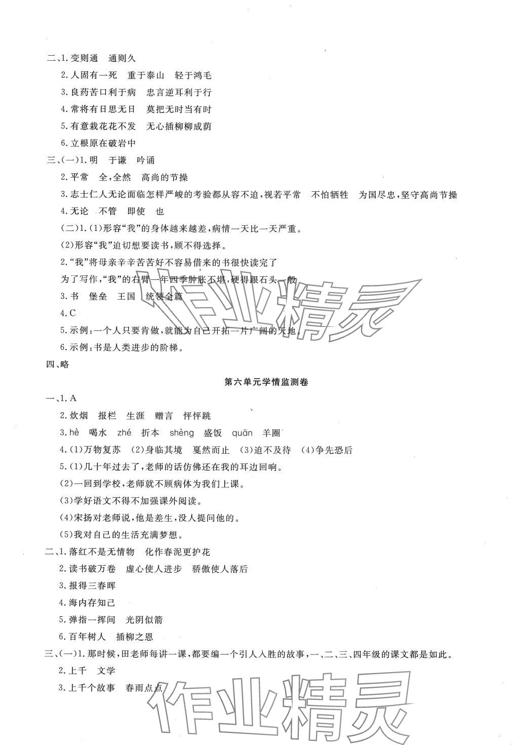 注:目前有些书本章节名称可能整理的还不是很完善,但都是按照顺序排列的,请同学们按照顺序仔细查找。练习册 2024年学海金卷小学夺冠单元检测卷六年级语文下册人教版 答案主要是用来给同学们做完题方便对答案用的,请勿直接抄袭。