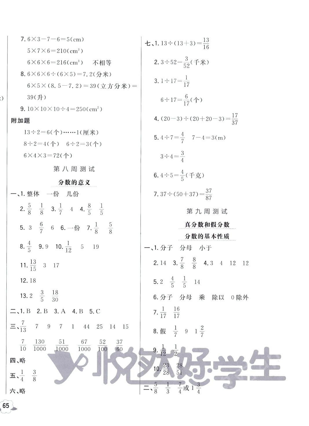 注:目前有些书本章节名称可能整理的还不是很完善,但都是按照顺序排列的,请同学们按照顺序仔细查找。练习册 2024年悦然好学生周周测五年级数学下册人教版 答案主要是用来给同学们做完题方便对答案用的,请勿直接抄袭。