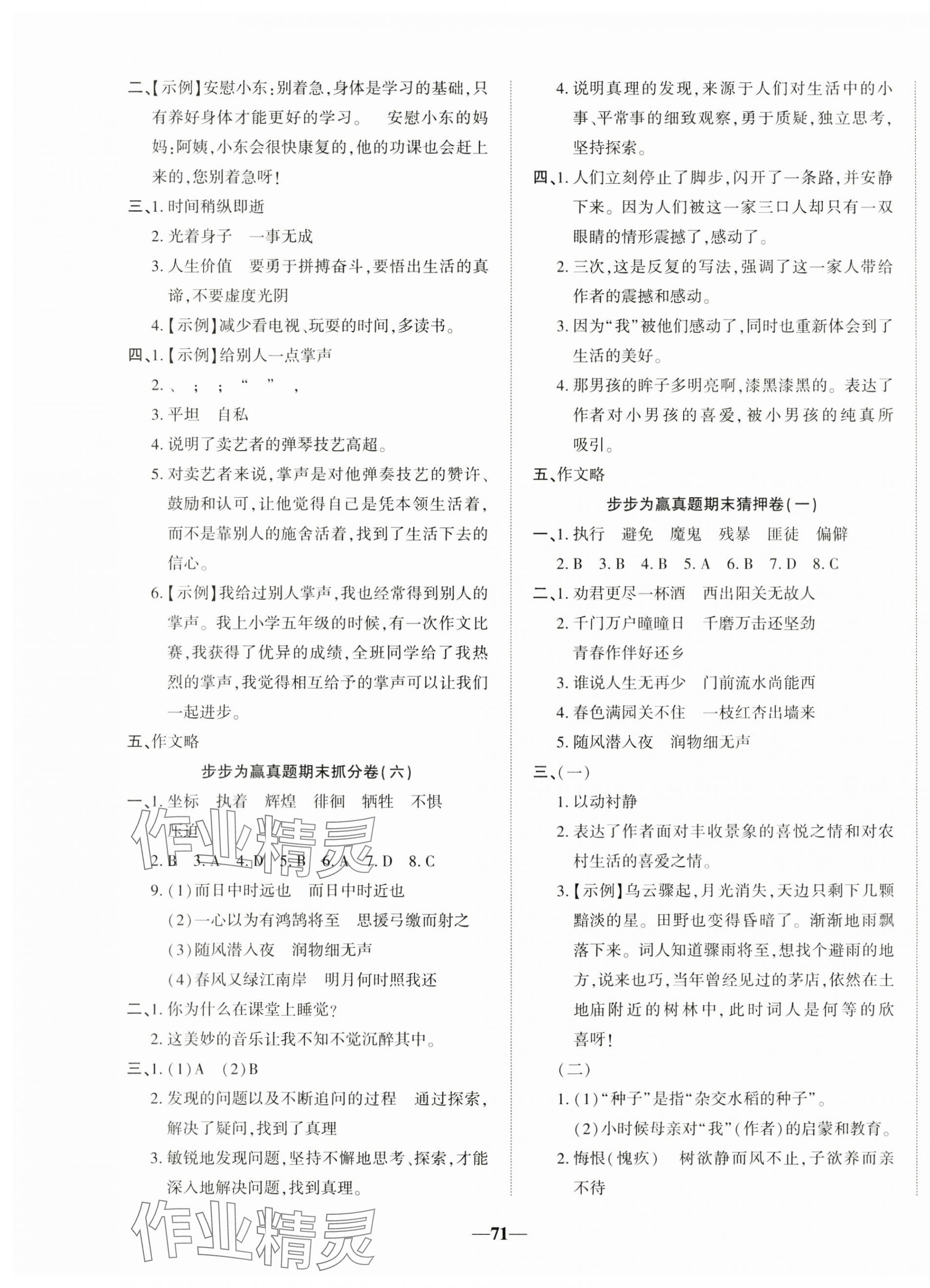 注:目前有些书本章节名称可能整理的还不是很完善,但都是按照顺序排列的,请同学们按照顺序仔细查找。练习册 2024年真题期末抓分卷六年级语文下册人教版 答案主要是用来给同学们做完题方便对答案用的,请勿直接抄袭。