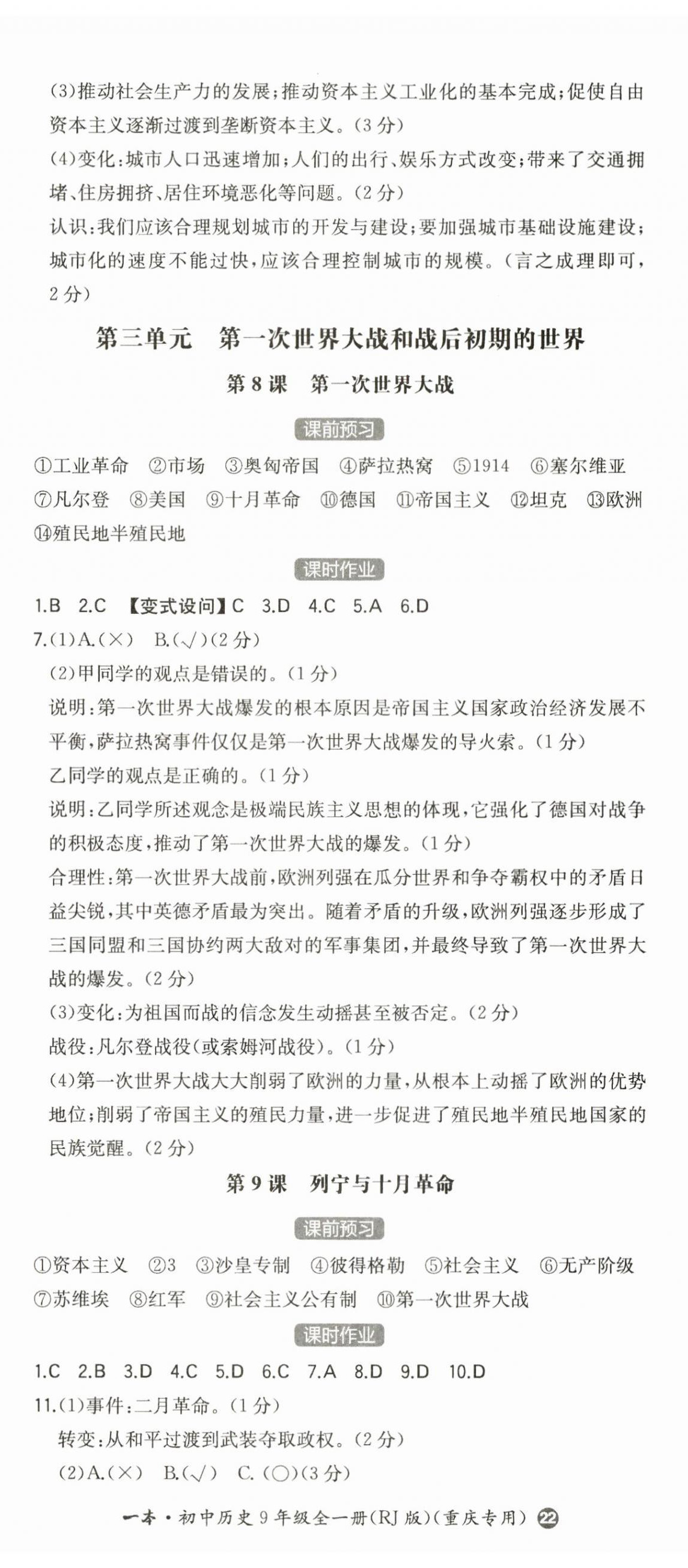 2024年一本历史全一册人教版重庆专版