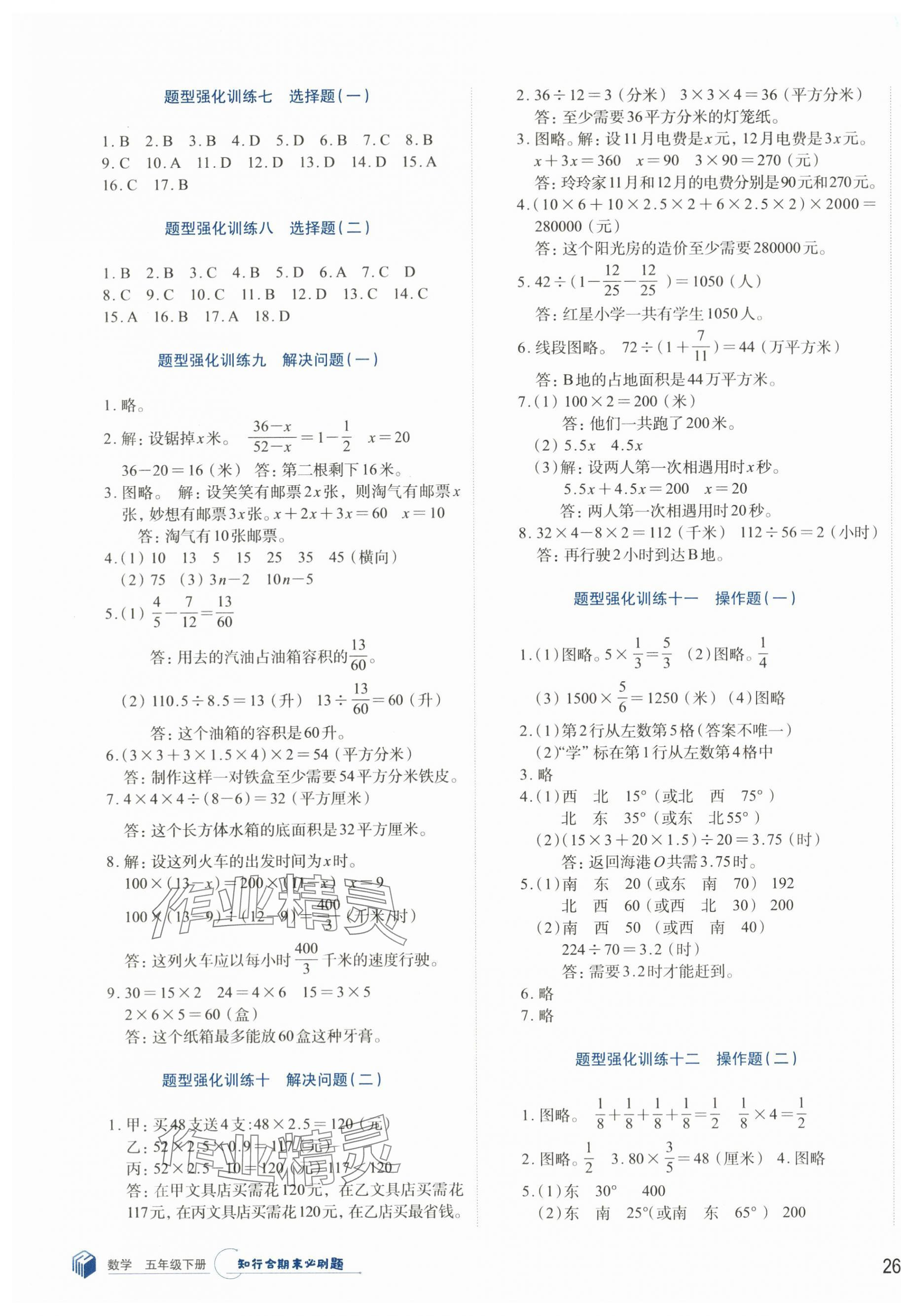 注:目前有些书本章节名称可能整理的还不是很完善,但都是按照顺序排列的,请同学们按照顺序仔细查找。练习册 2024年知行合期末必刷题五年级数学下册北师大版 答案主要是用来给同学们做完题方便对答案用的,请勿直接抄袭。