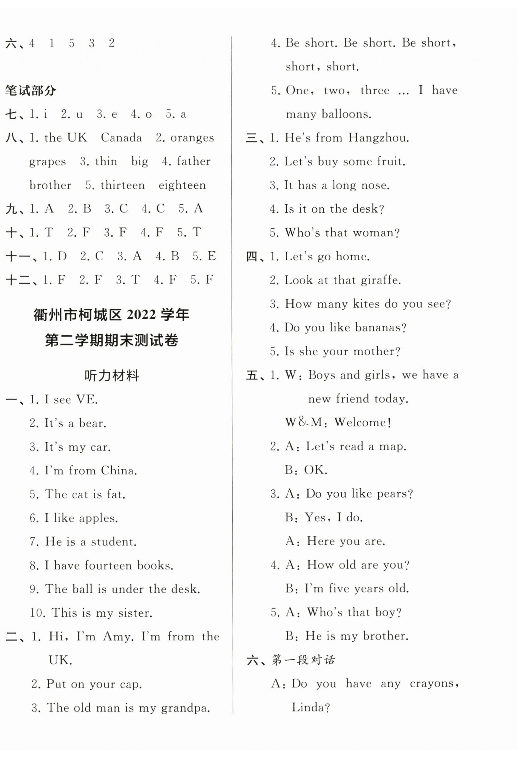注:目前有些书本章节名称可能整理的还不是很完善,但都是按照顺序排列的,请同学们按照顺序仔细查找。练习册 2024年知行合期末必刷题三年级英语下册人教版 答案主要是用来给同学们做完题方便对答案用的,请勿直接抄袭。