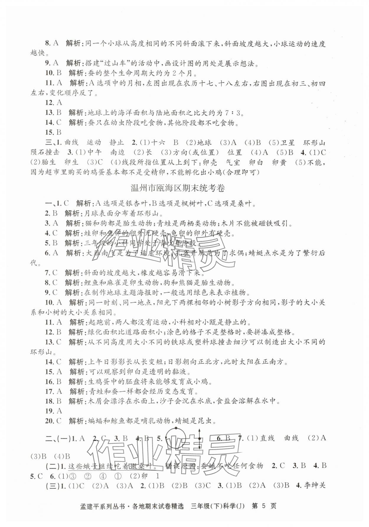 注:目前有些书本章节名称可能整理的还不是很完善,但都是按照顺序排列的,请同学们按照顺序仔细查找。练习册 2024年孟建平各地期末试卷精选三年级科学下册教科版 答案主要是用来给同学们做完题方便对答案用的,请勿直接抄袭。
