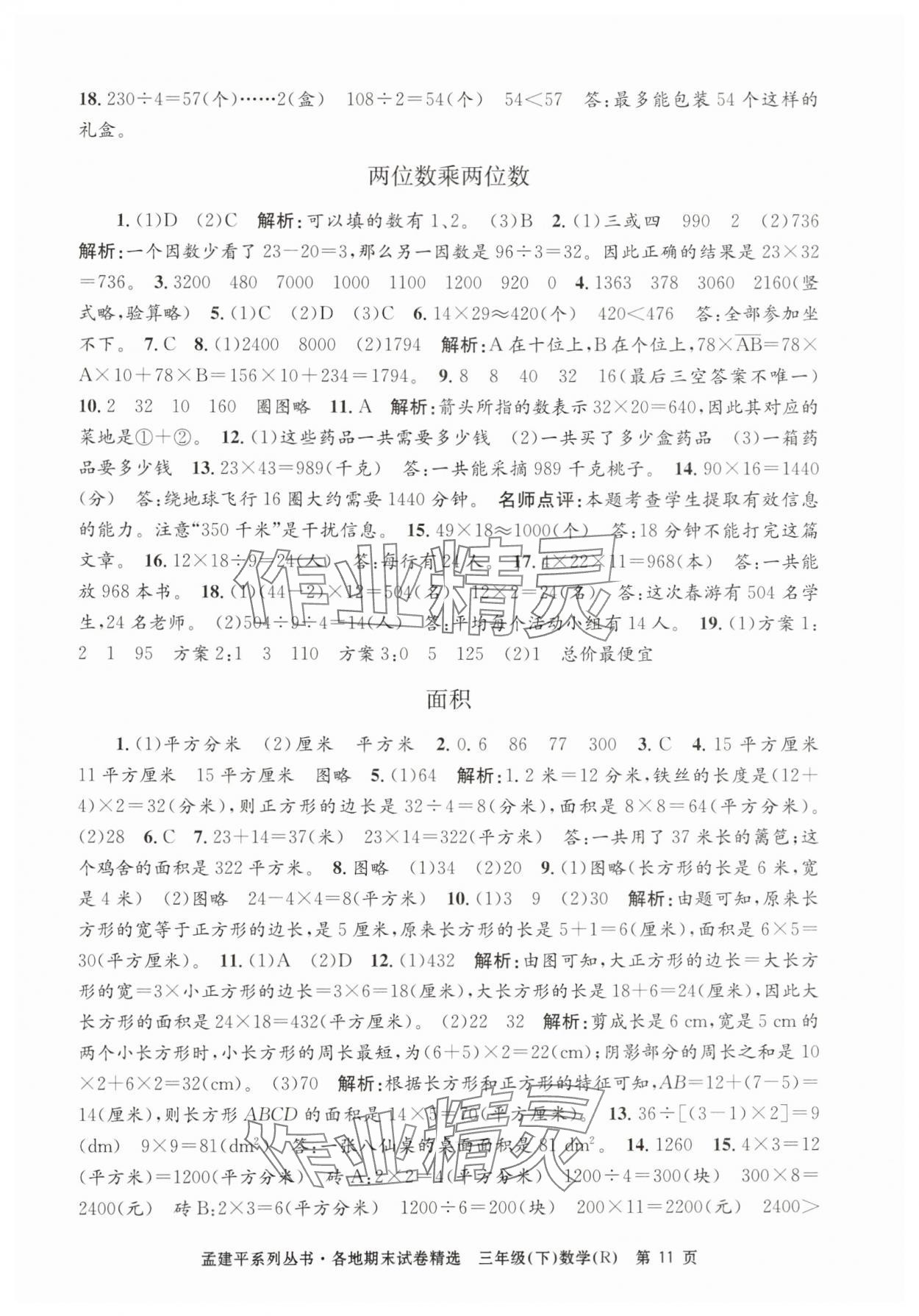 2024年孟建平各地期末试卷精选三年级数学下册人教版