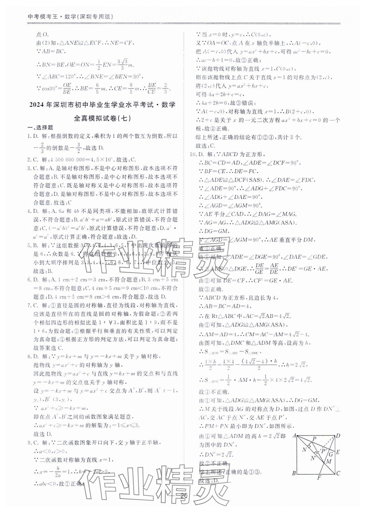 注:目前有些书本章节名称可能整理的还不是很完善,但都是按照顺序排列的,请同学们按照顺序仔细查找。练习册 2024年中考模考王全真模拟试卷数学深圳专用版 答案主要是用来给同学们做完题方便对答案用的,请勿直接抄袭。