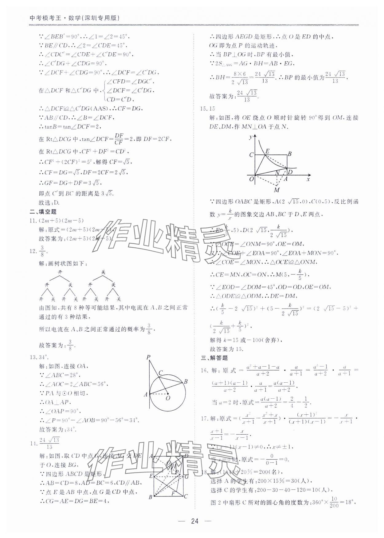 注:目前有些书本章节名称可能整理的还不是很完善,但都是按照顺序排列的,请同学们按照顺序仔细查找。练习册 2024年中考模考王全真模拟试卷数学深圳专用版 答案主要是用来给同学们做完题方便对答案用的,请勿直接抄袭。