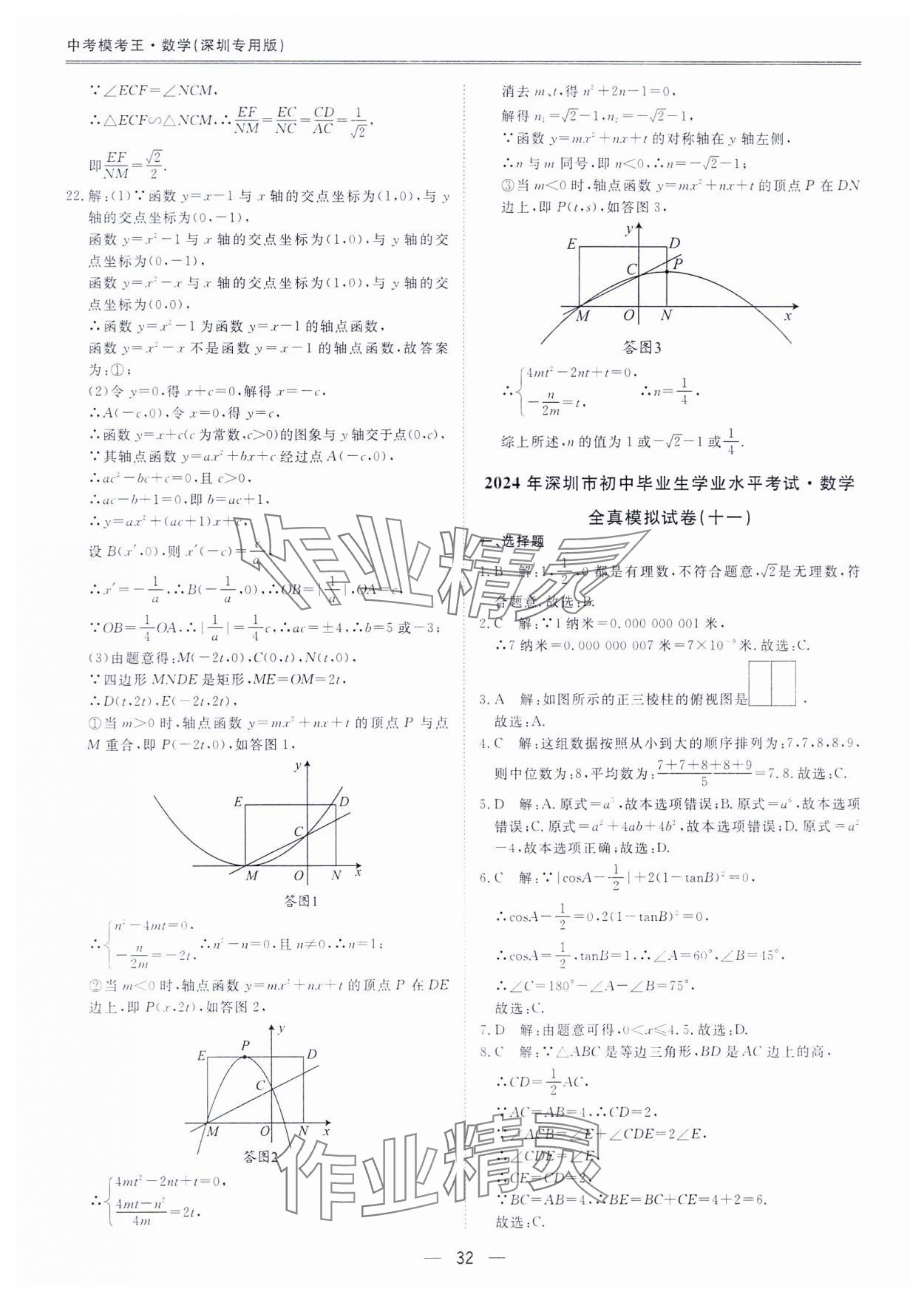 注:目前有些书本章节名称可能整理的还不是很完善,但都是按照顺序排列的,请同学们按照顺序仔细查找。练习册 2024年中考模考王全真模拟试卷数学深圳专用版 答案主要是用来给同学们做完题方便对答案用的,请勿直接抄袭。
