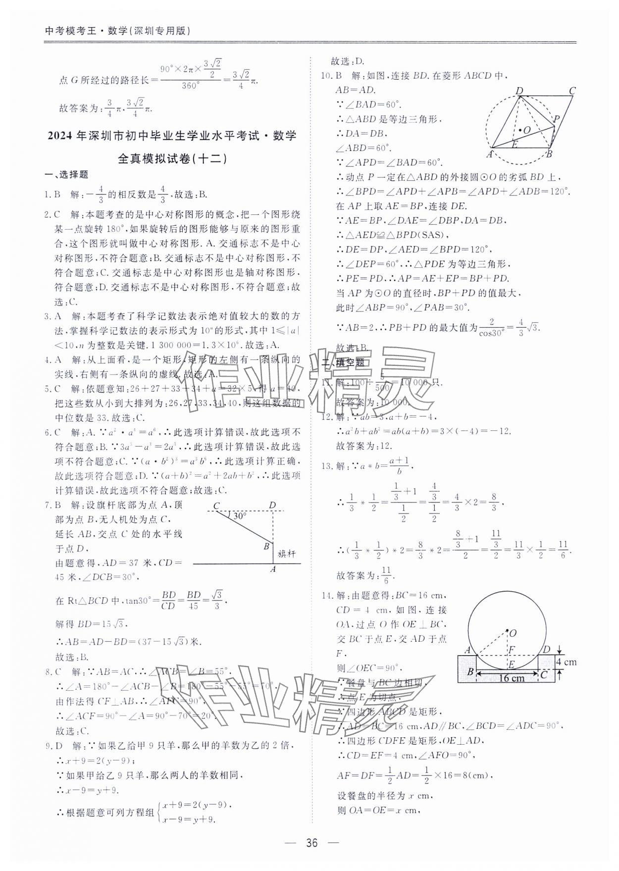 注:目前有些书本章节名称可能整理的还不是很完善,但都是按照顺序排列的,请同学们按照顺序仔细查找。练习册 2024年中考模考王全真模拟试卷数学深圳专用版 答案主要是用来给同学们做完题方便对答案用的,请勿直接抄袭。